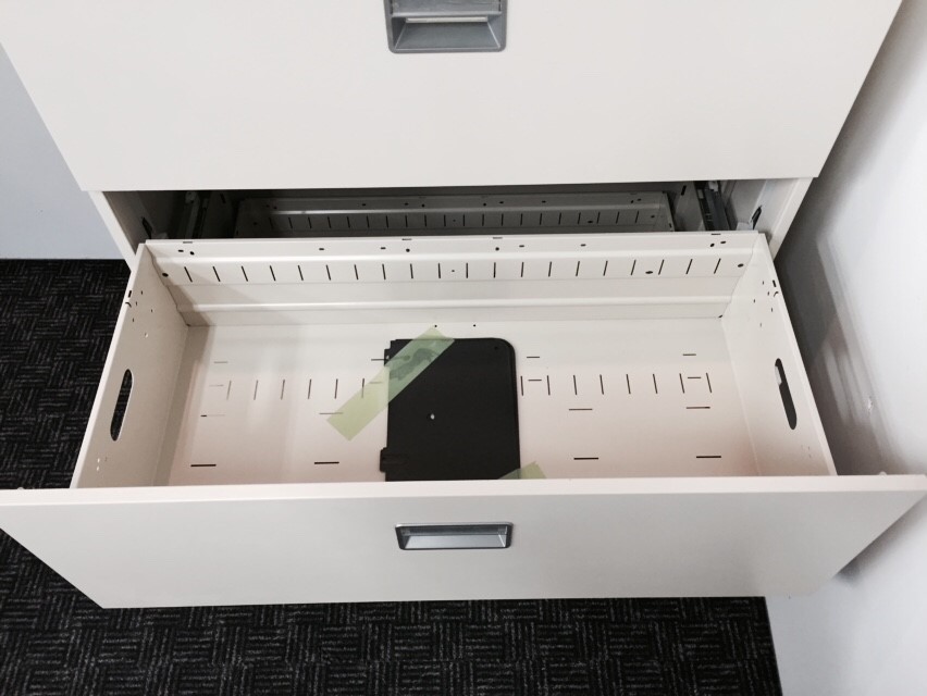 - 一部不具合ありそ引出の開閉不可、施錠不可、棚板無しといったの書庫の本来の効用を果たすための機能以外の一部が使用不可(例、扉、引出の開閉がしづらいなどがある。 )