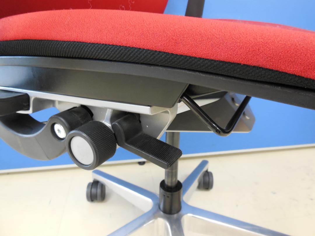 快適な座り心地に不可欠な調節機能である、上下昇降、座面の奥行き調整、リクライニングなどを備えており、操作もわかりやすく好評です。 特に、座面の奥行きは、座面下の左右に通った細いバーで調整でき、座ったままで軽やかに滑るように調整が可能です。 価格面では、新品では高めですが、中古は流通も多く、定価の3割前後の価格で高級チェアの座り心地を手に入れることができます!