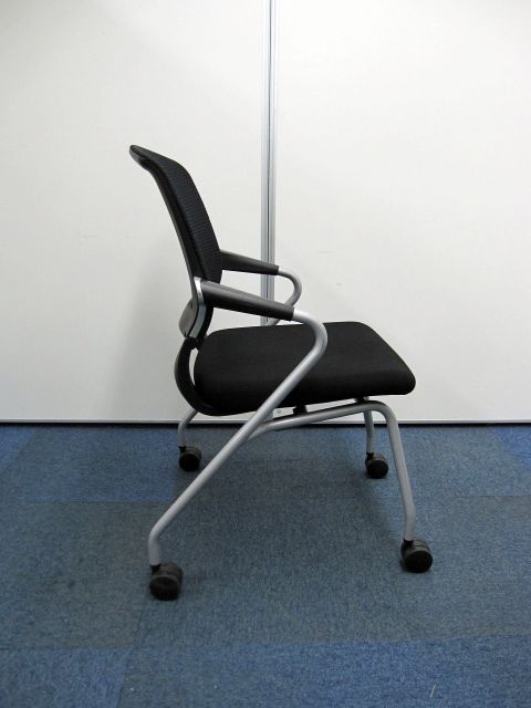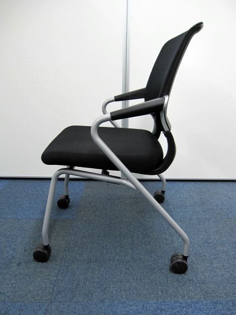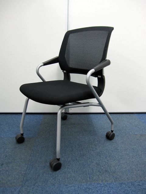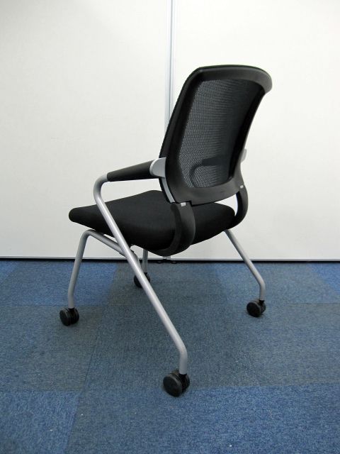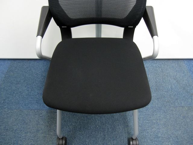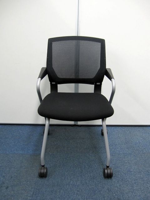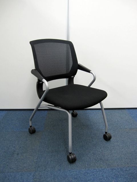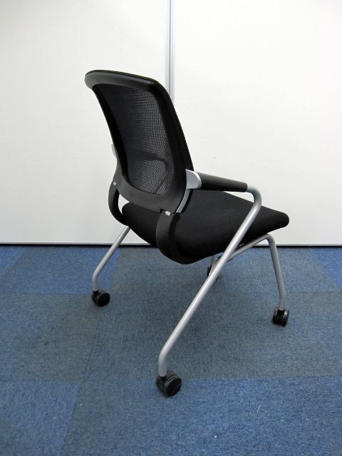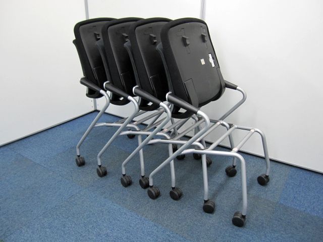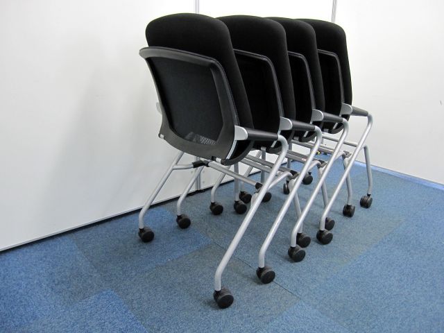 【状態良好】【ネスティングチェア】コクヨ『サテリテ』Saterite【キャスタータイプ・塗装脚】背:メッシュ カラー:ブラック【水平スタック】- 品川・三田店