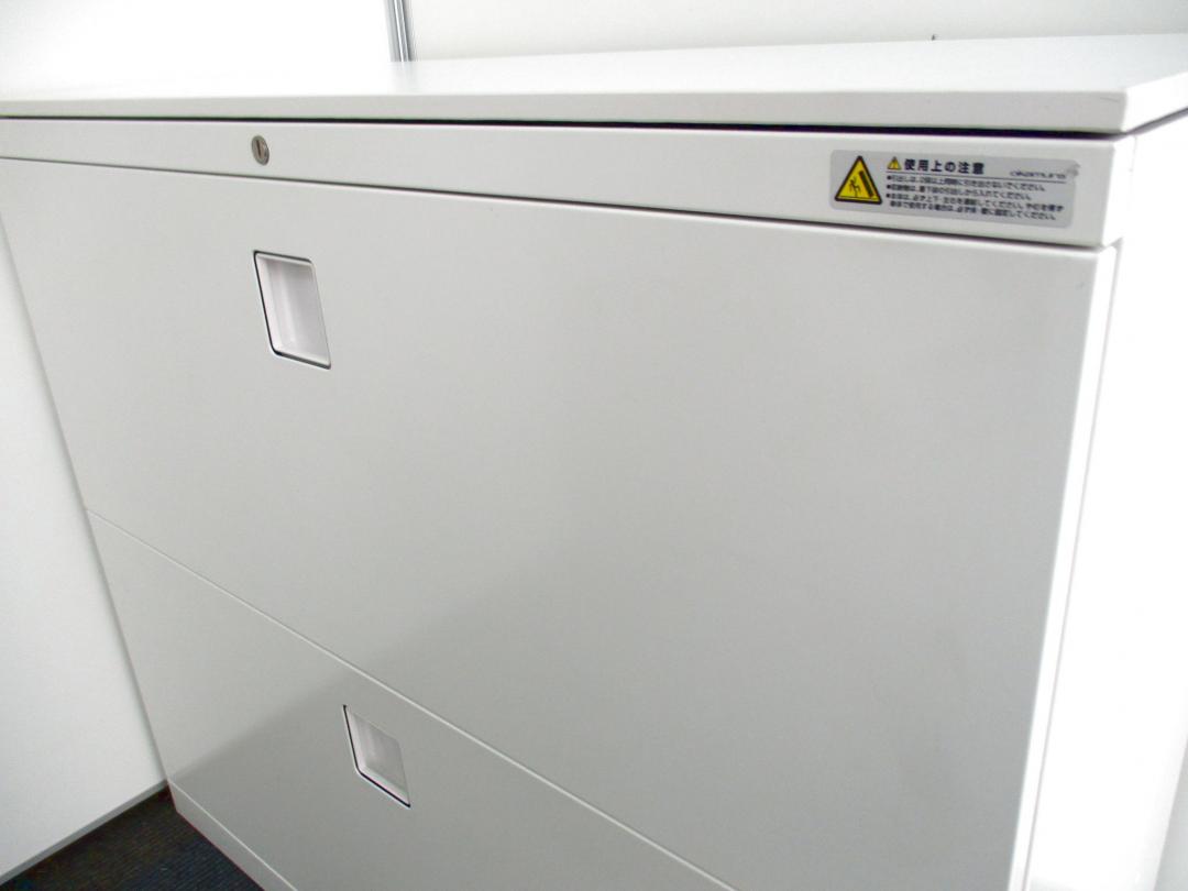 【オフィスの必需品!大容量の三段キャビネット!】■オカムラ(okamura)製 レクトラインシリーズ 3段ラテラル ローキャビネット ■天板/ベース付 ■シリンダー錠 ■ホワイト 【弊社使用欄:A01037187】