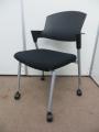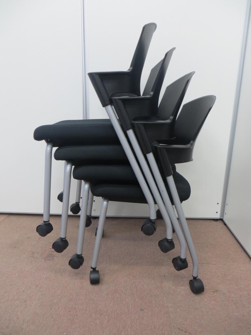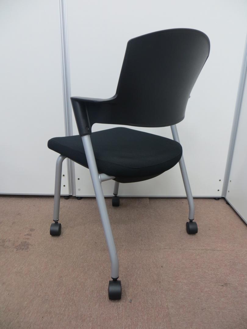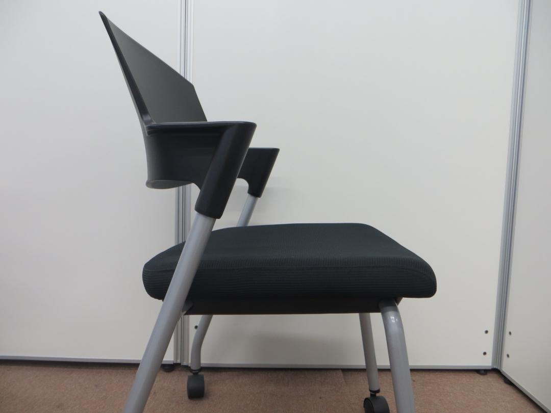 【6/16・8脚入荷予定!】【シンプルスマートなスタッキングチェア!分厚いクッションで長時間でも快適な座り心地!】■コクヨ製 プロッティ スタッキングチェア 肘付ミーティングチェア ■固定肘 ■キャスター付 ■ブラック ■背面樹脂 オフィスバスターズ梅田本店