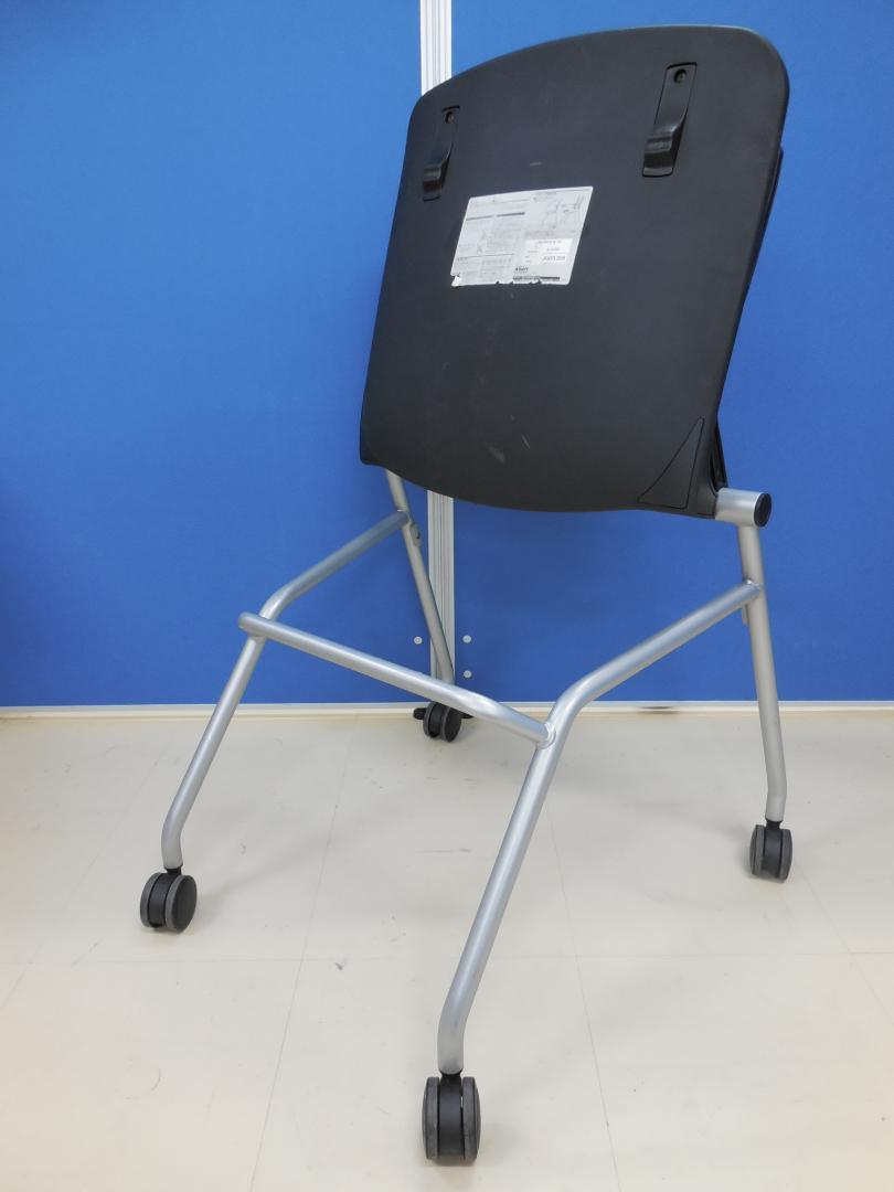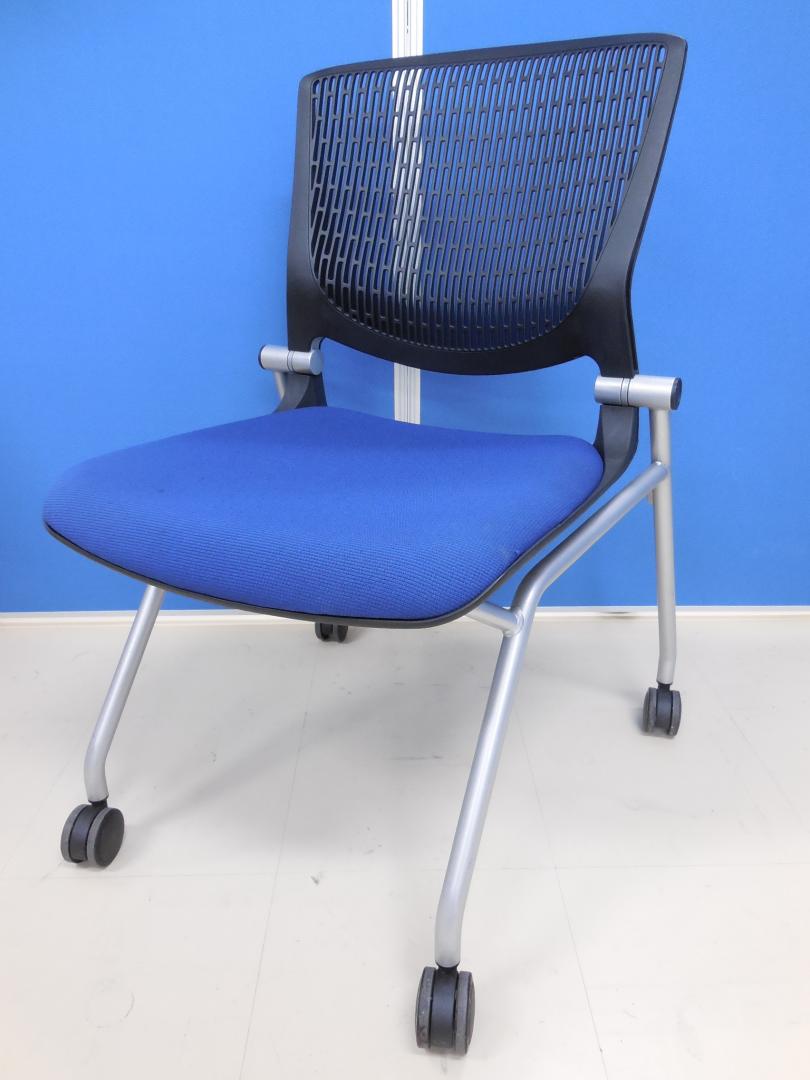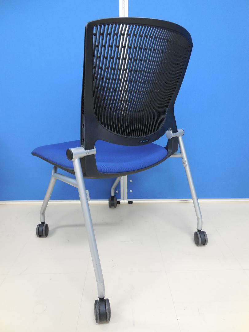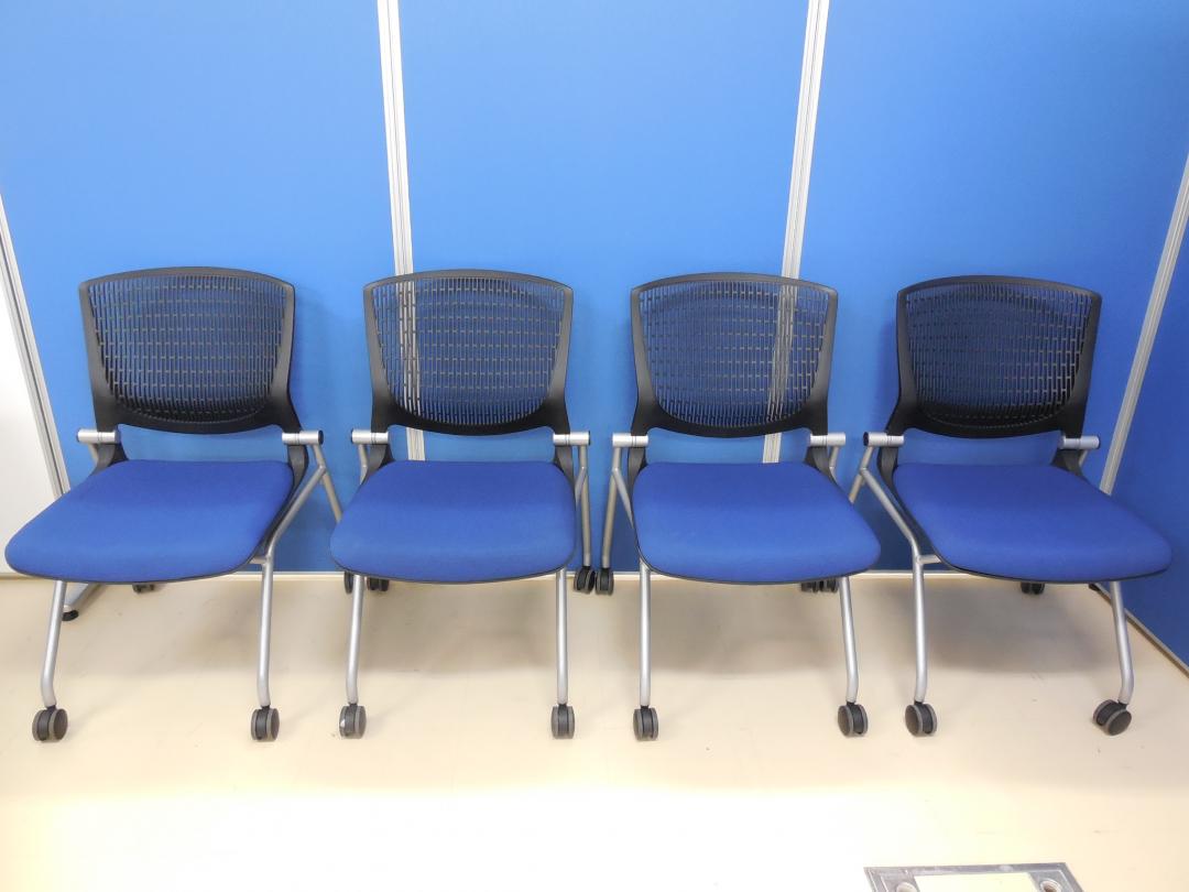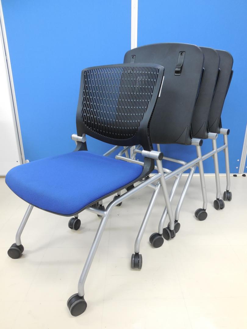 【4脚セットで2,000円お買い得!】岡村製作所製 グラータ ブルー色■ネスティングチェア 肘付き キャスター付き■デザイン性が高く、座り心地も良いです!【状態良好】サーキュラーバリューCO2削減量の算出について