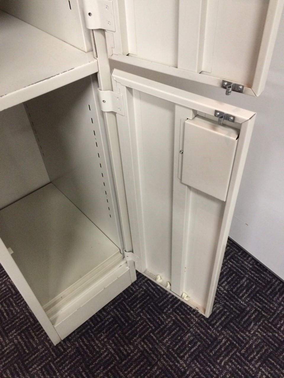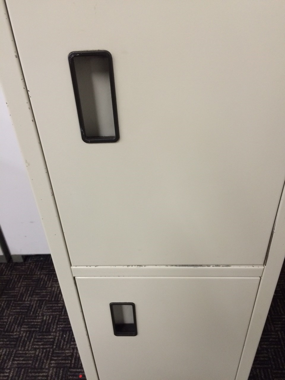 - 一部不具合ありそ引出の開閉不可、施錠不可、棚板無しといったの書庫の本来の効用を果たすための機能以外の一部が使用不可(例、扉、引出の開閉がしづらいなどがある。 )