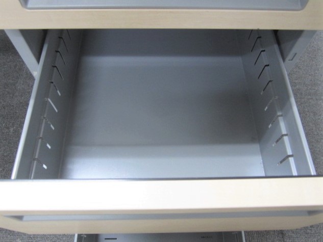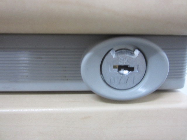 - シンプルながらも使いやすい工夫があります。ロックは、一度の施錠ですべての引出しの鍵がかかるオールロック機構。