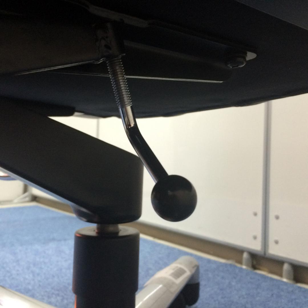 - くるぶしを支点に背と座の角度が連動して傾き、背の最後傾角度は20°まで可能です。またロッキングの角度をお好みの場所で固定できるシートアングルストッパー付です。