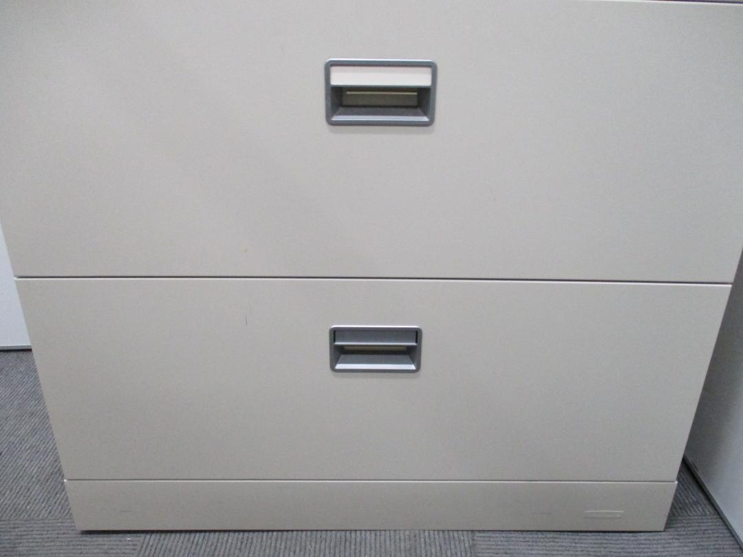 大手オフィス家具メーカー、オカムラ製の3段ラテラル書庫(キャビネット)になります。