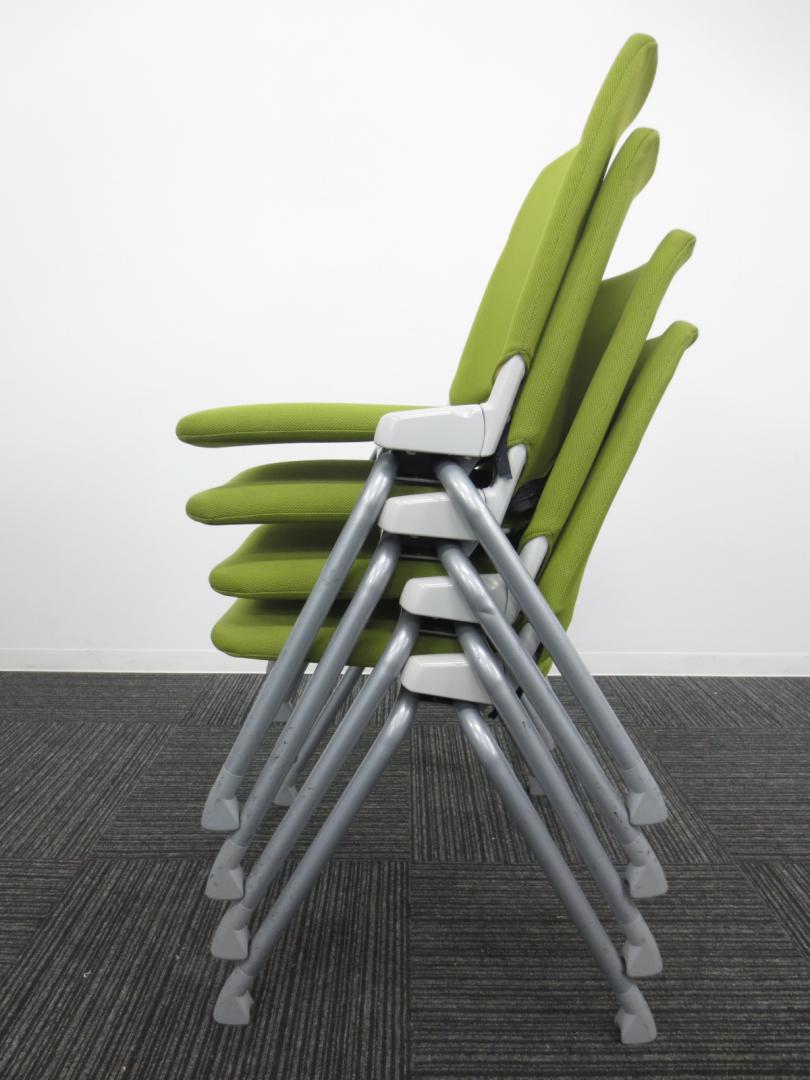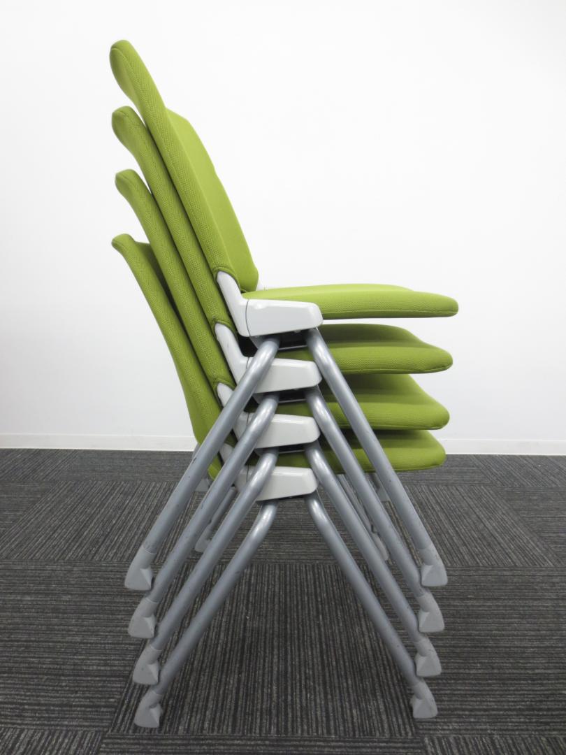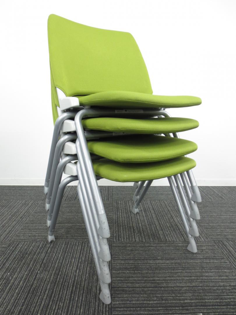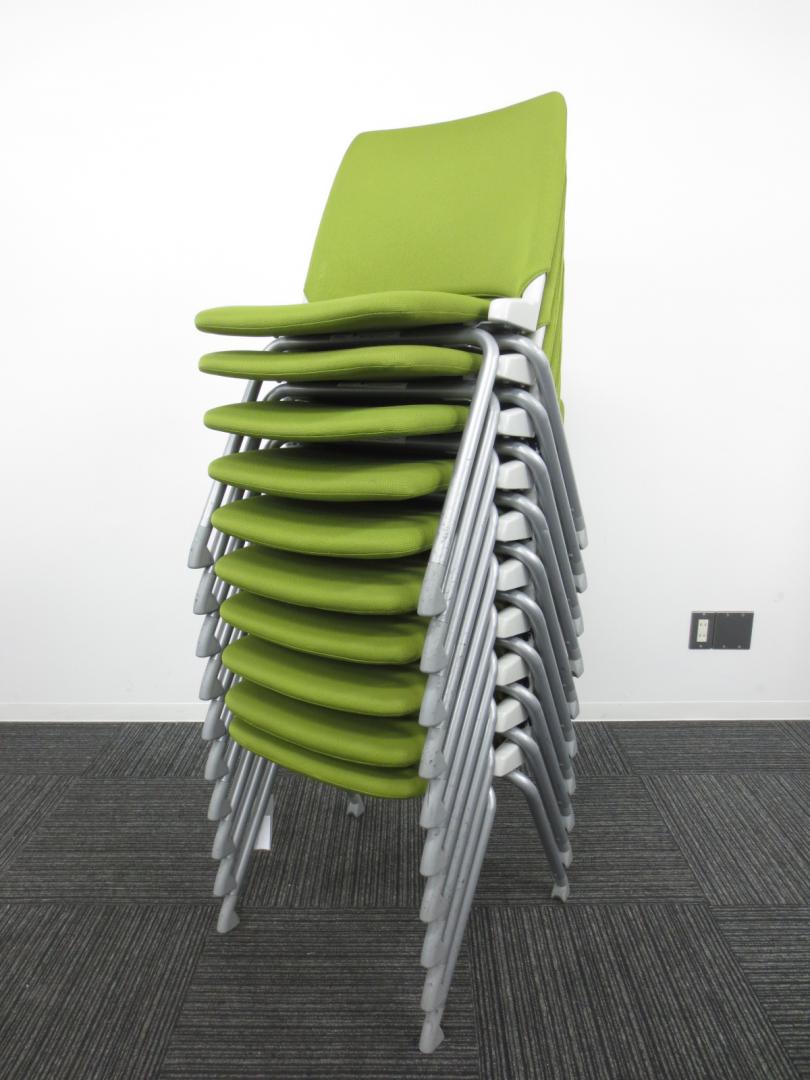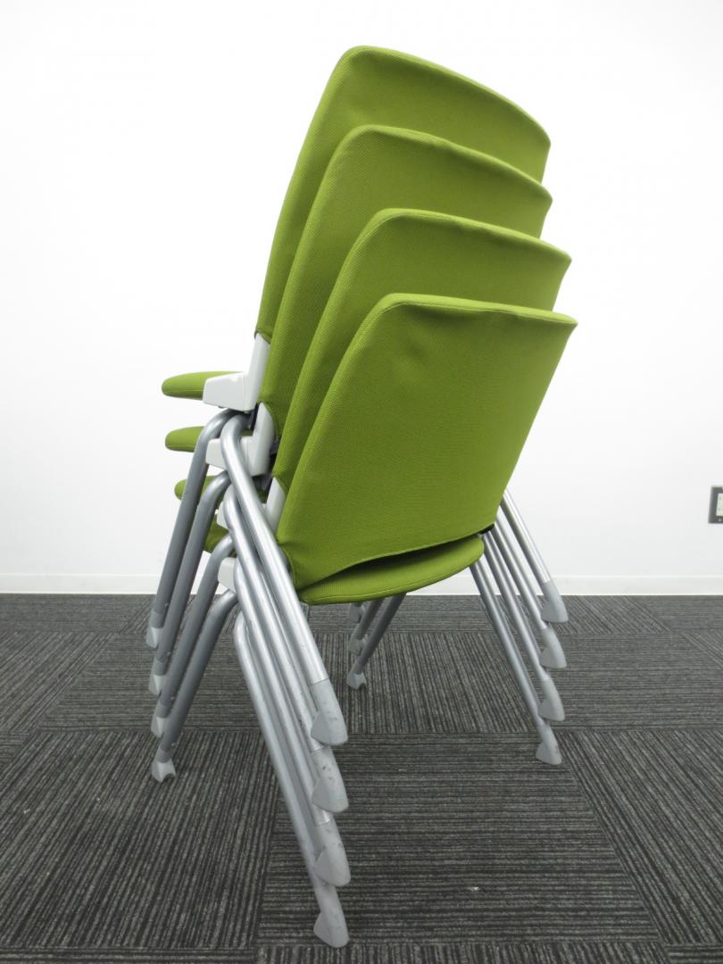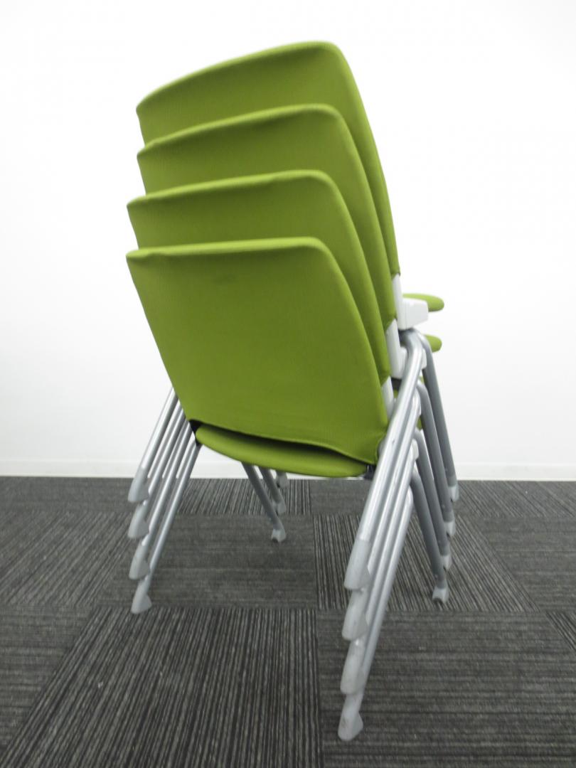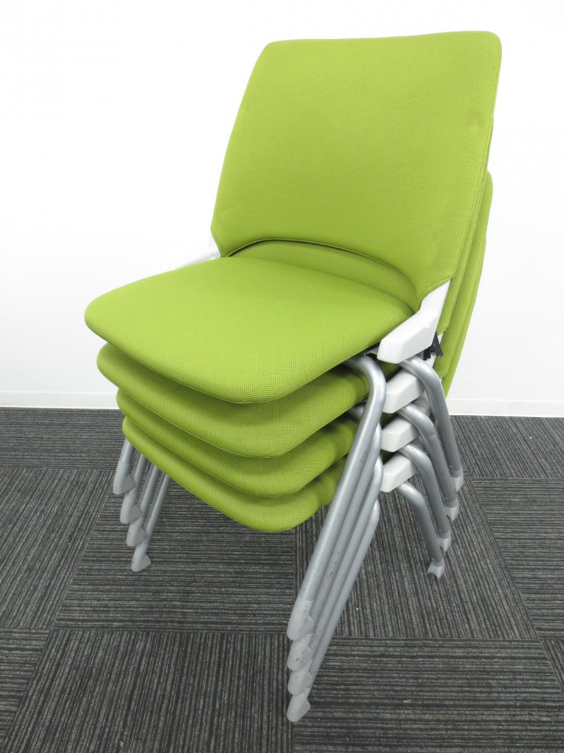 【会議用チェア】スタッキングチェア 内田洋行 グリーン 垂直にチェアを重ねる上下スタッキング、水平方向に重ねるスライドスタッキングの両方に対応。【相模原・町田店】- 春日部・越谷店
