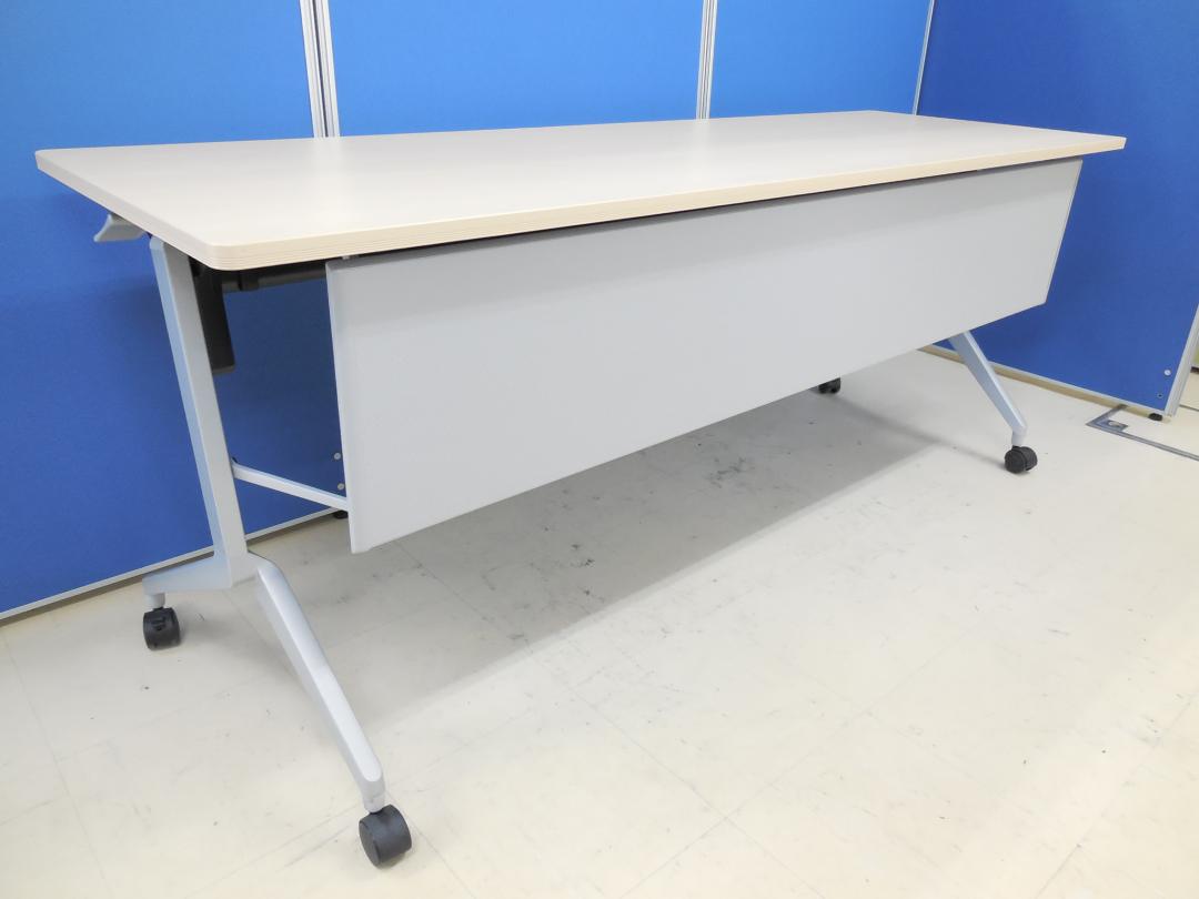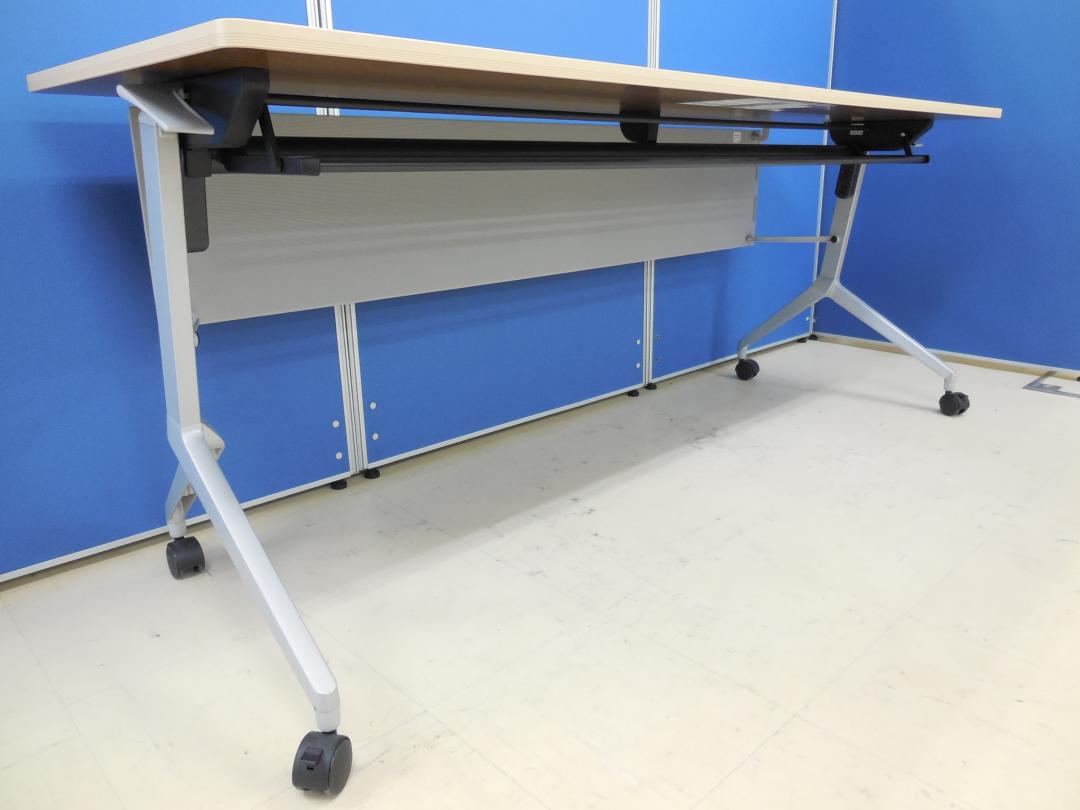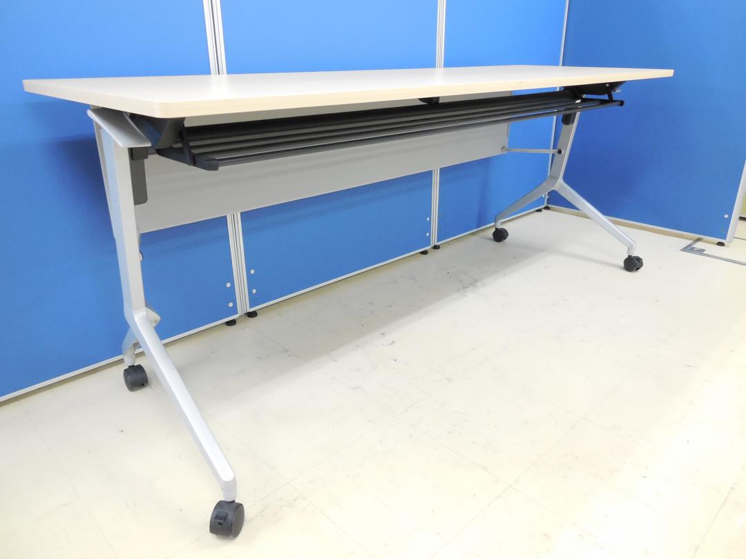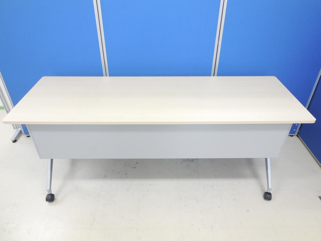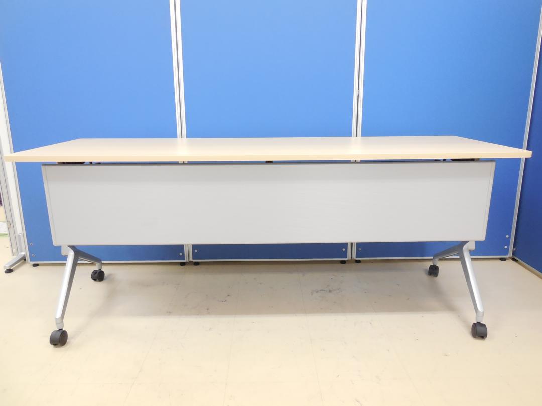 【8台⇒残り2台!】サイドスタックテーブル コクヨ製 ライトナチュラル:P1M■パネル付き■軽快な操作性と高い収納効率!幅広いシーンにて対応可能!【フラップ式会議テーブル】- 足立・葛飾店