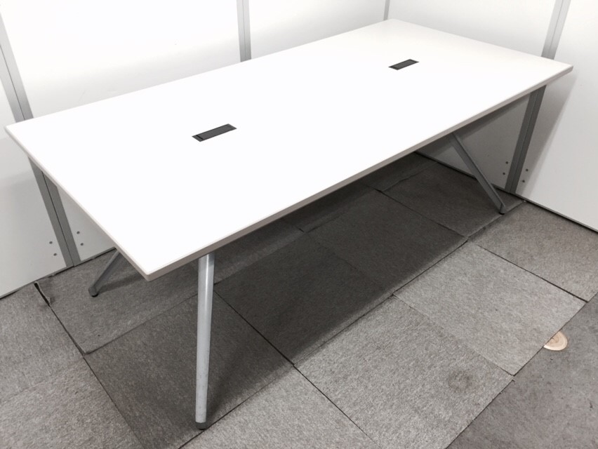 【4名様~6名様】配線タップ付の会議用テーブル入荷!足の作りがスタイリッシュでお洒落なオフィスにお勧めの一品!【1台限り】- 在庫数