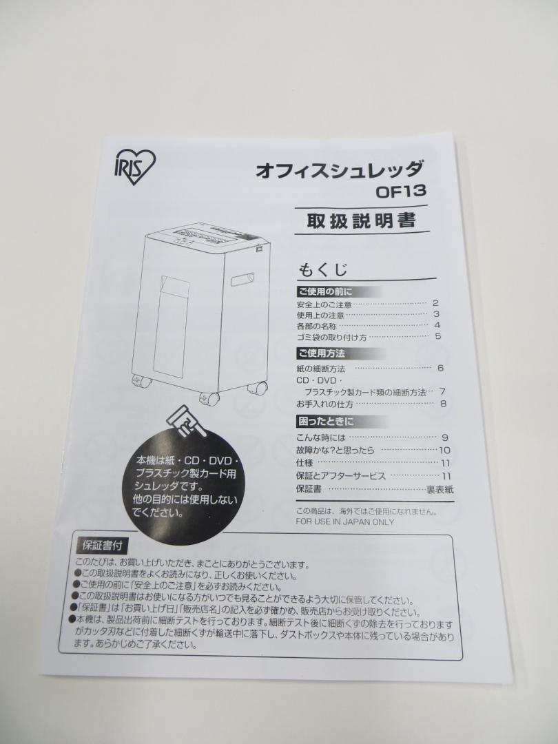 【新品】 OF13_ アイリスオーヤマ シュレッダー 159263