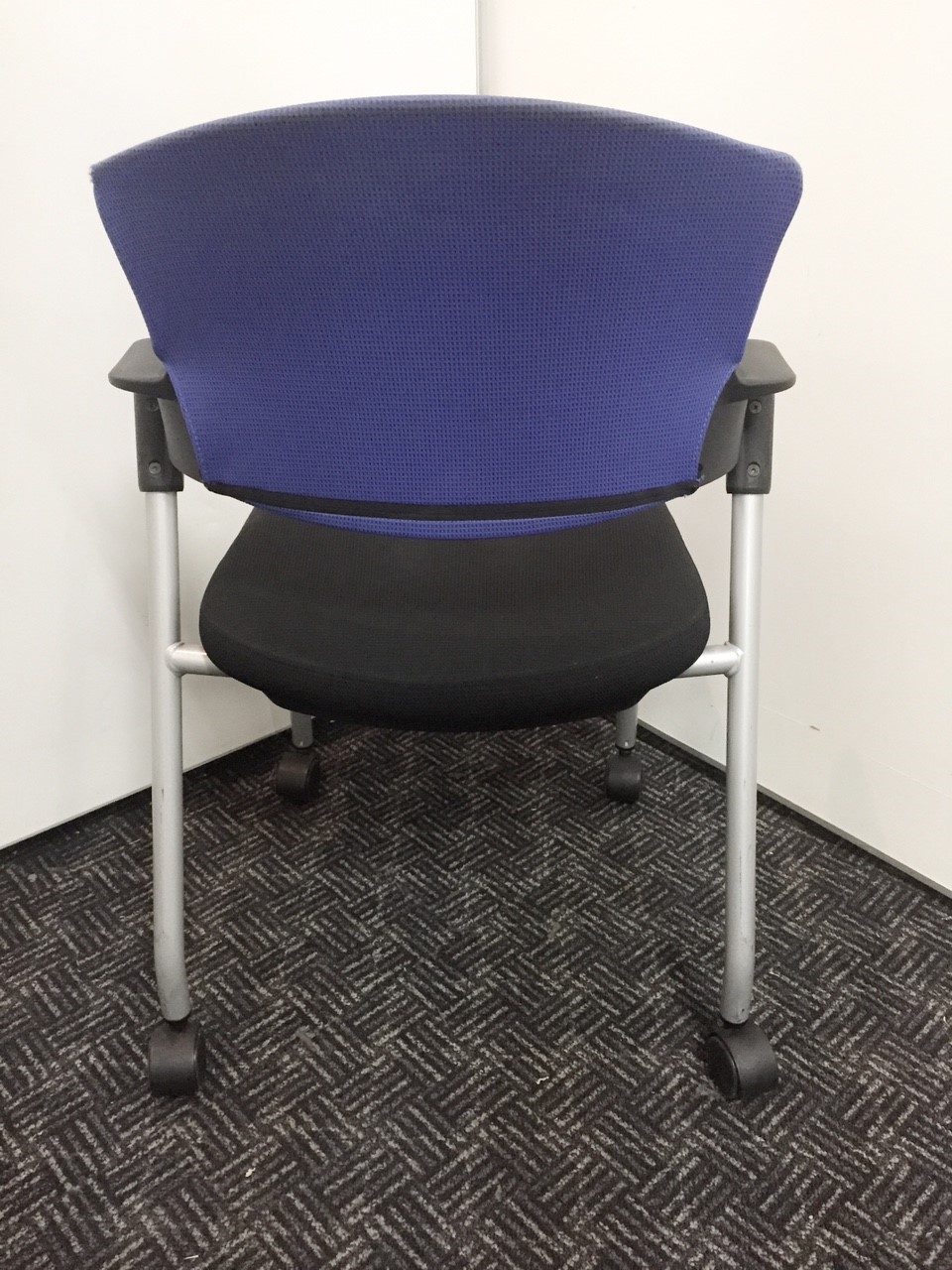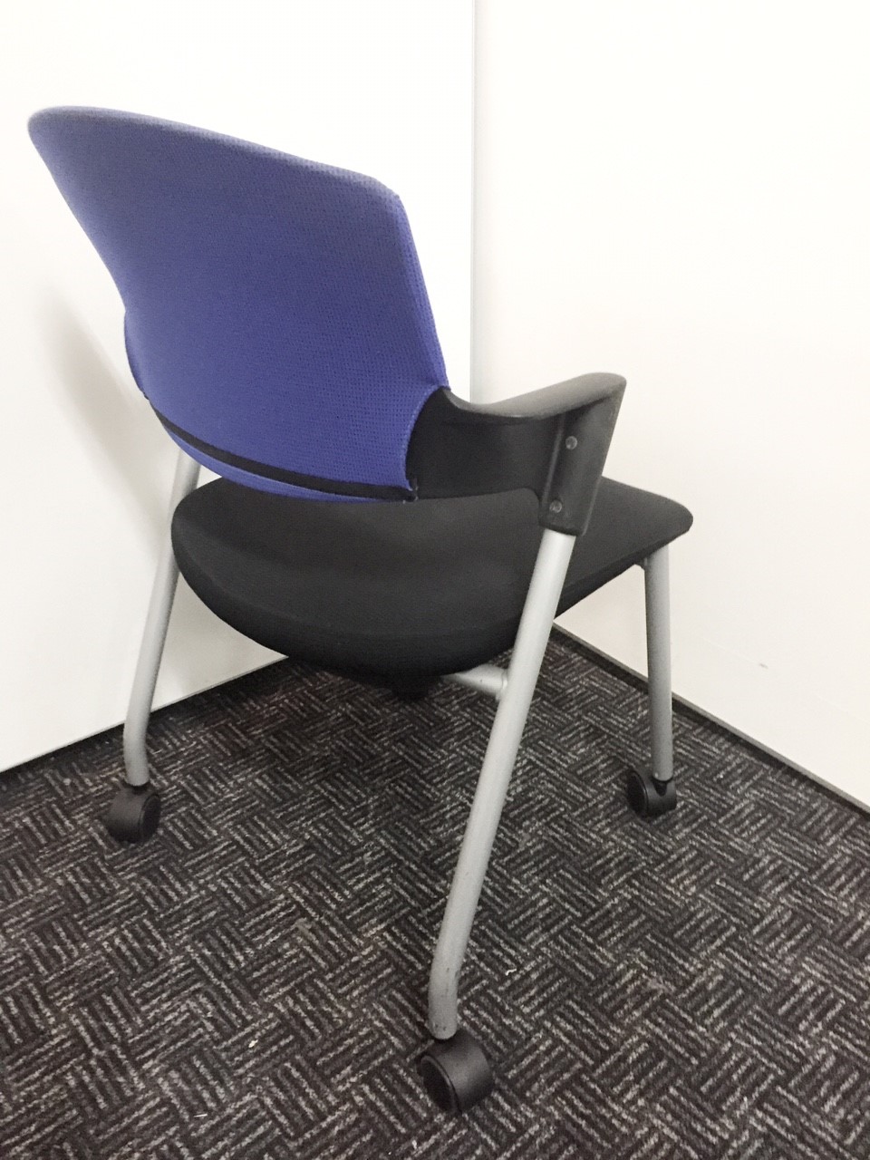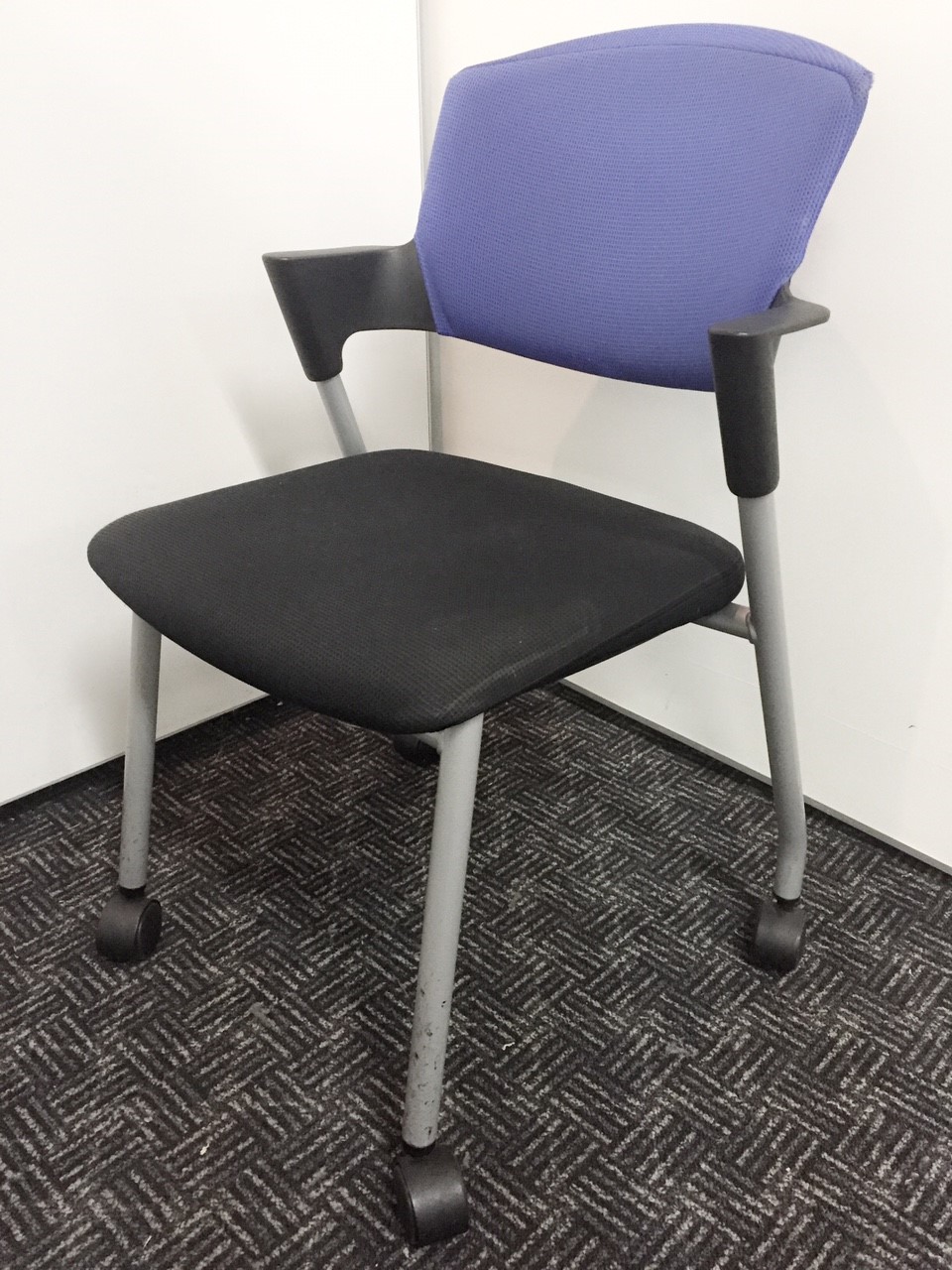 【シンプルスマートなスタッキングチェア!分厚いクッションで長時間でも快適な座り心地!】■コクヨ(KOKUYO)製 プロッティ (Protty) 肘付 ミーテイングチェア スタッキングチェア ■固定肘 ■ブルー×ブラック ■背面ヌードタイプ