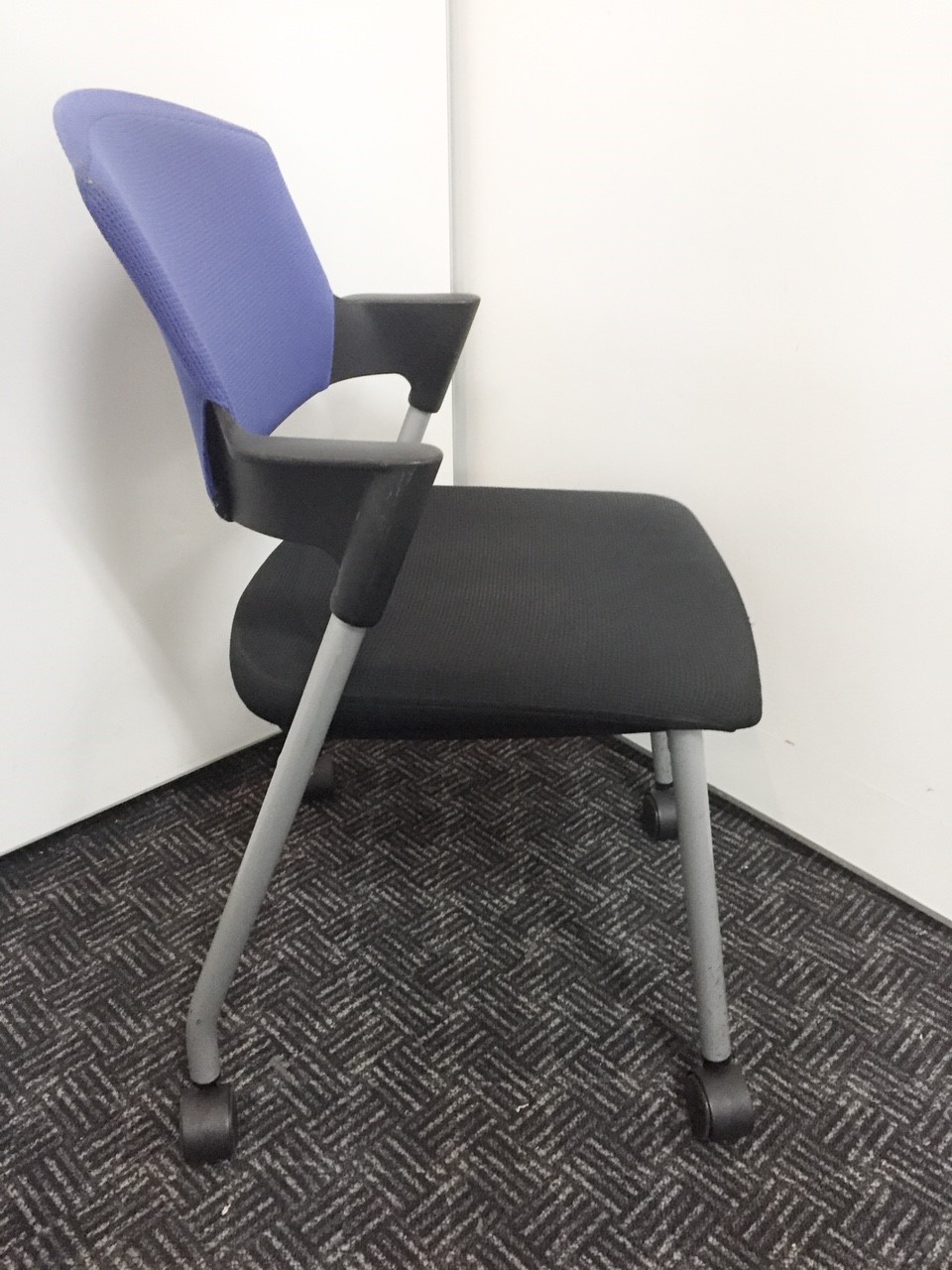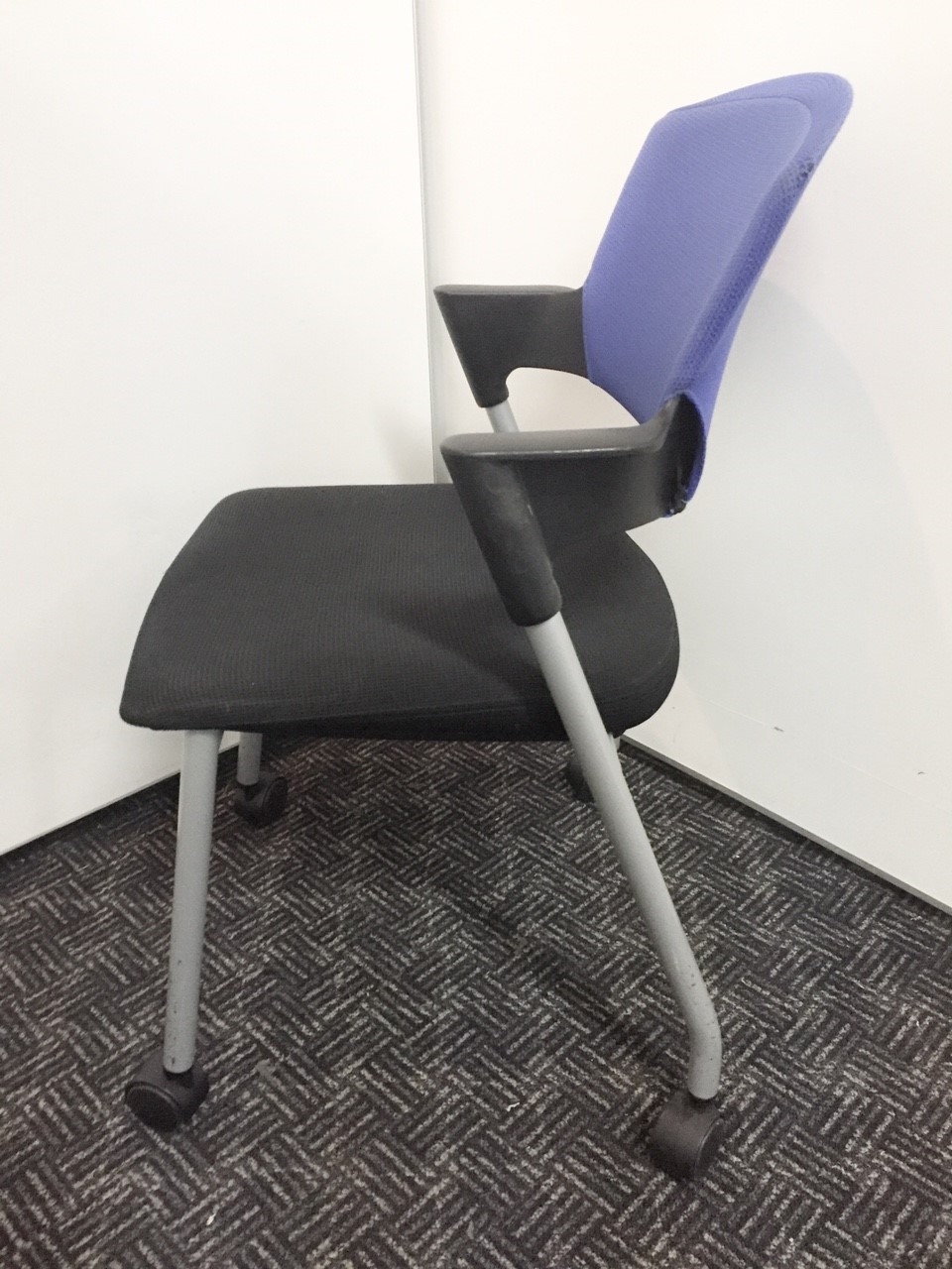 【遠方倉庫在庫品】【重ねて収納!オシャレなカラーとシンプルなデザイン!プロッティなら、どんなミーティングスペースにもフィット!】■コクヨ(kokuyo) ■プロッティ ■スタッキングチェア ■ミーティングチェア ■肘付き ■キャスター付き ■背面:ブルー(blue) 座面:黒(black) 【RA】