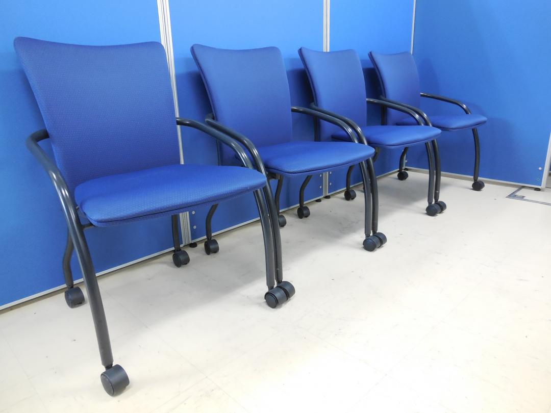 【6脚入荷!】イトーキ製 ミーティングチェア 深めなブルーカラー■軽快なデザインが魅力!座面をはねあげて簡単、効率よく収納!【ネスタブル】- 足立・葛飾店