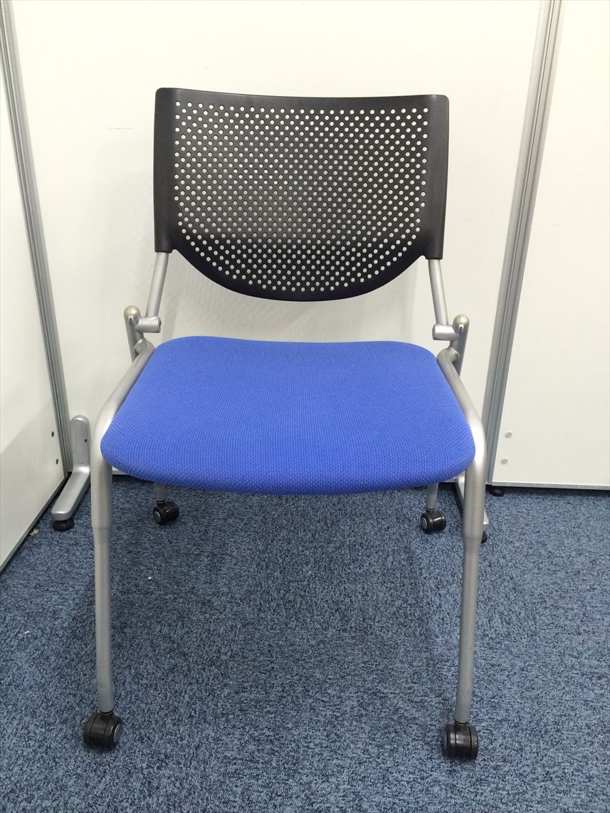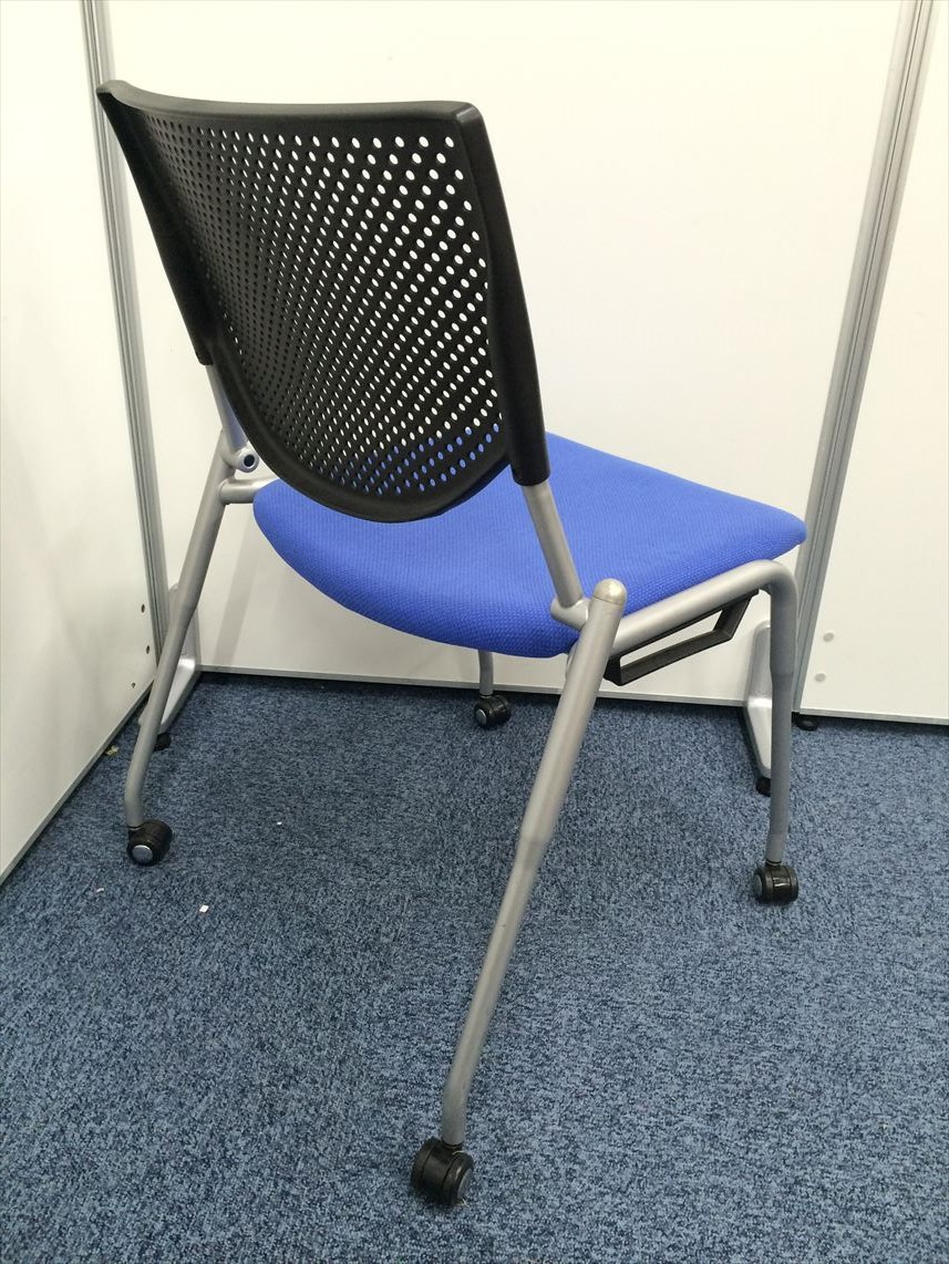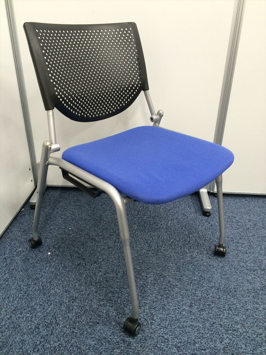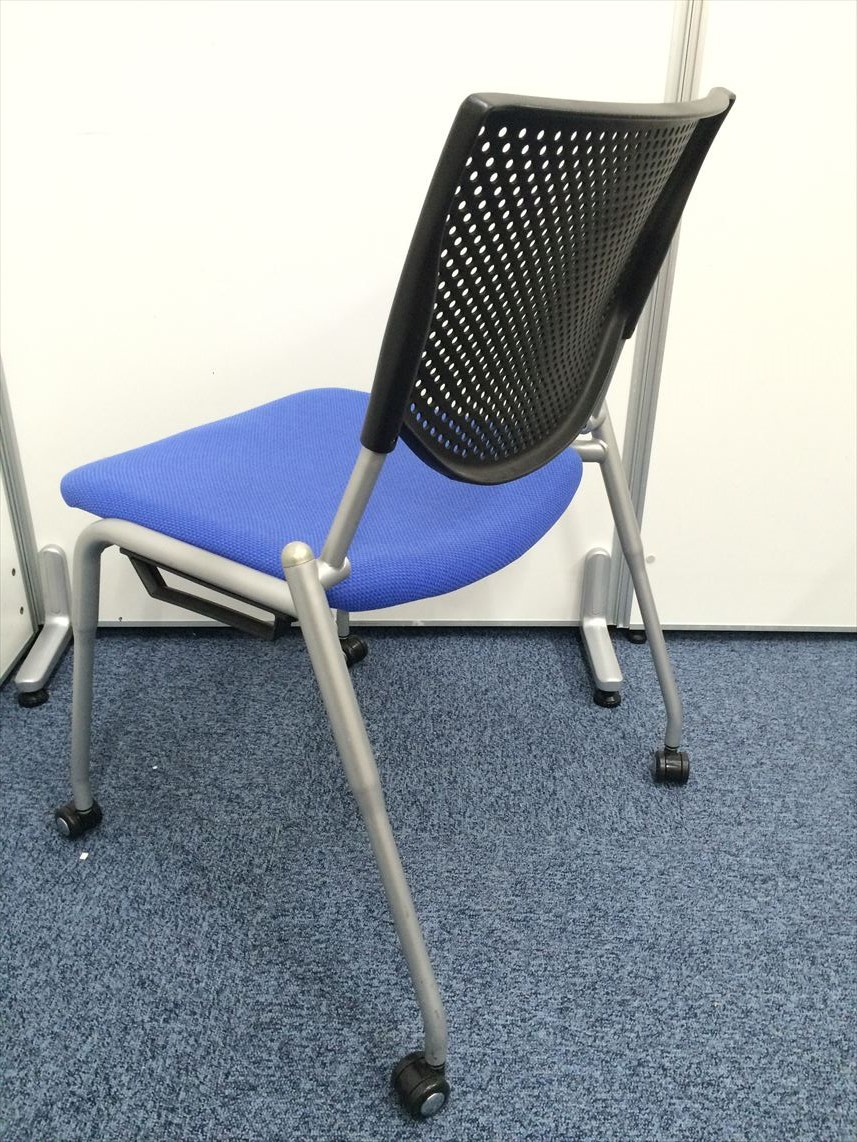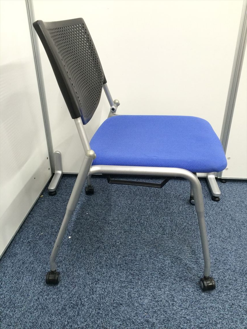 【残り一脚!】キャスター付スタッキングチェア ブルー色 中古チェアと言えばオフィスバスターズ!- 名古屋本店