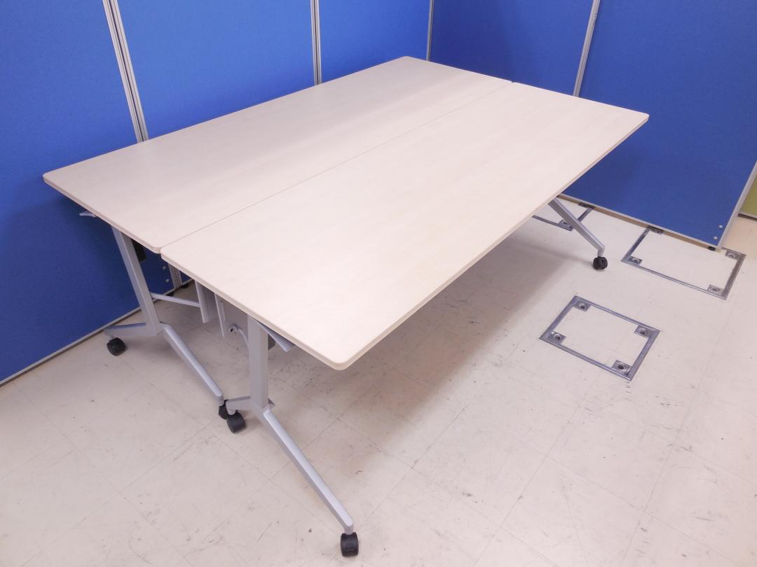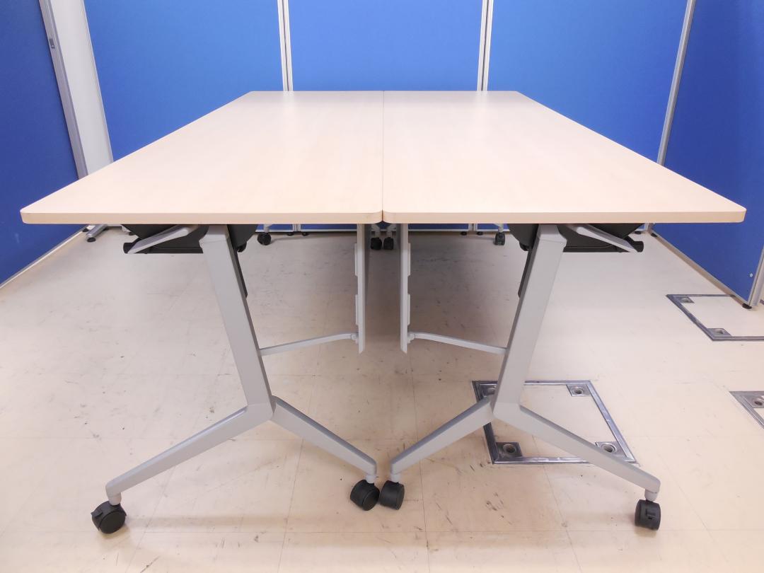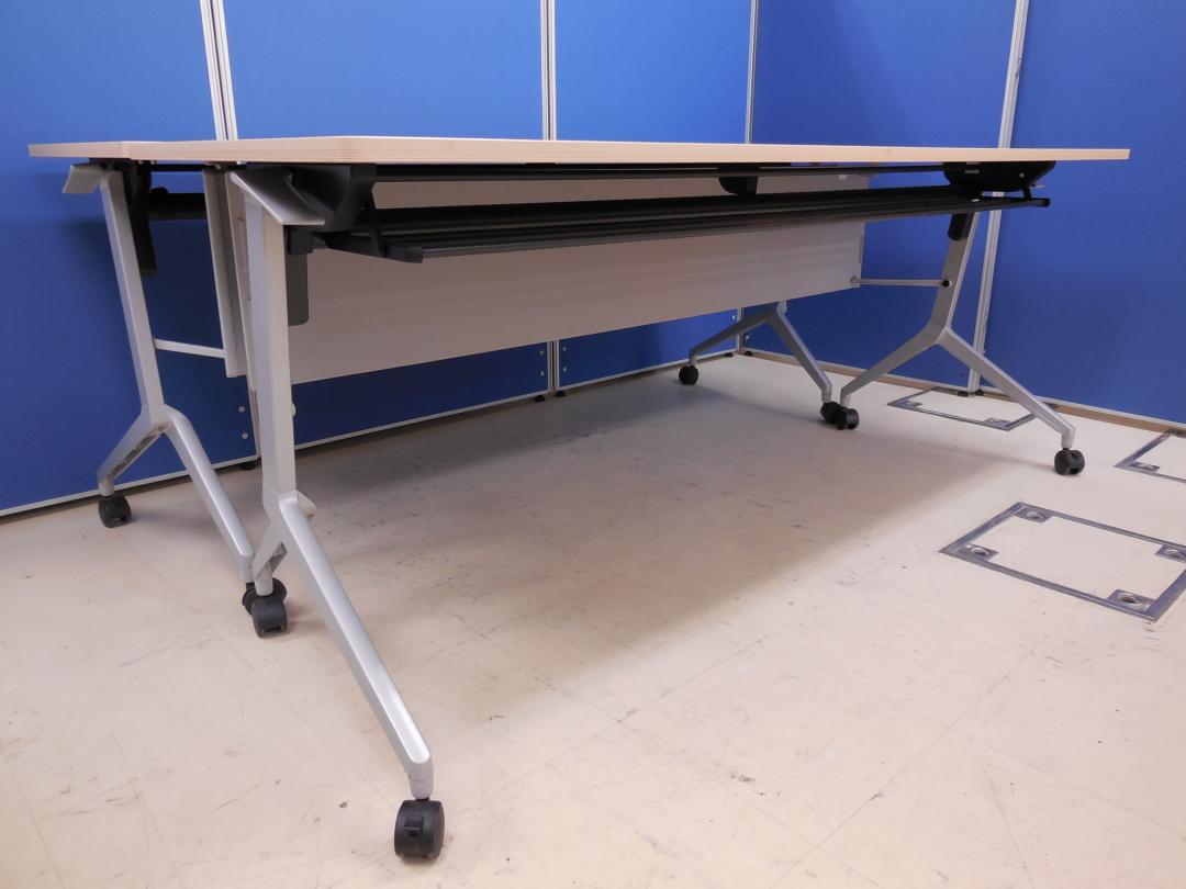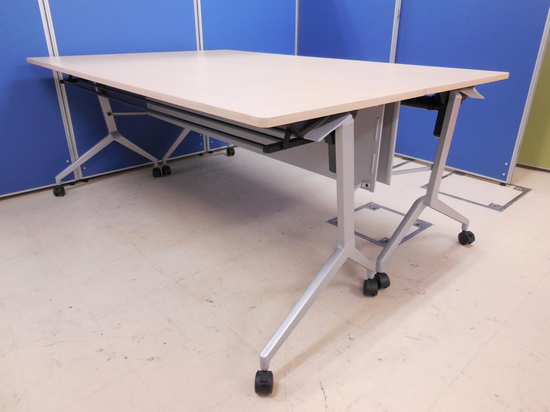 【2台セット商品!】コクヨ製 サイドスタックテーブル 幅1800mm 奥行600mm■ライトナチュラル:P1M■パネル付き■軽快な操作性と高い収納効率!幅広いシーンにて対応可能!【フラップ式会議テーブル】- 足立・葛飾店