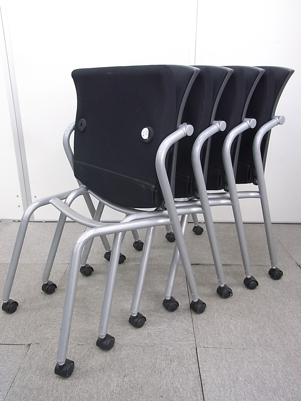 【4脚限定】横にスタックが可能なネスティングチェア入荷!ブラックカラーでシックな事務所に!- 在庫数