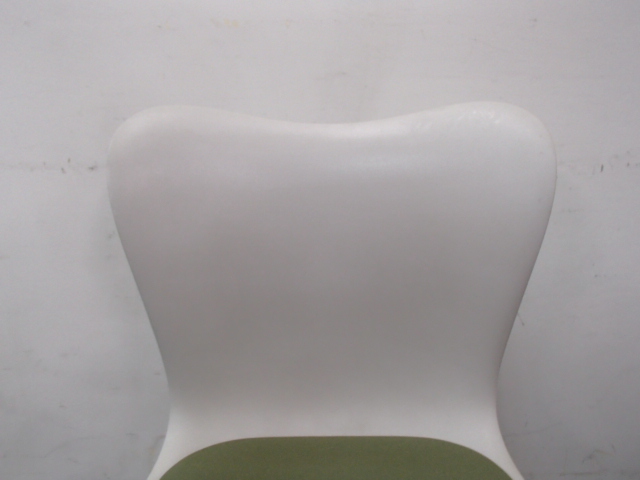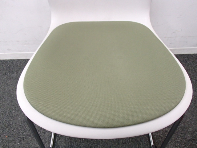 樹脂製の背面ホワイト色とふかふか座面のモスグリーン色の