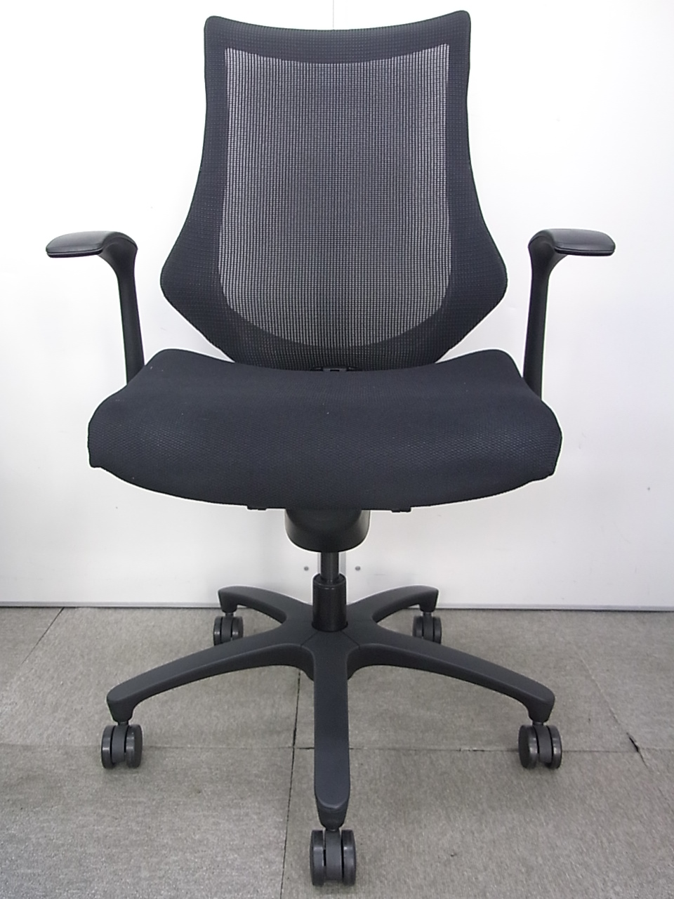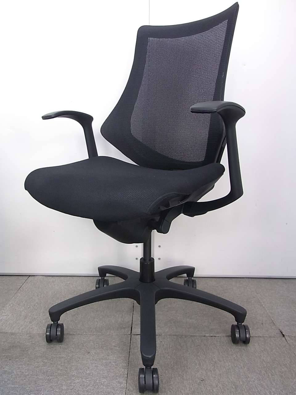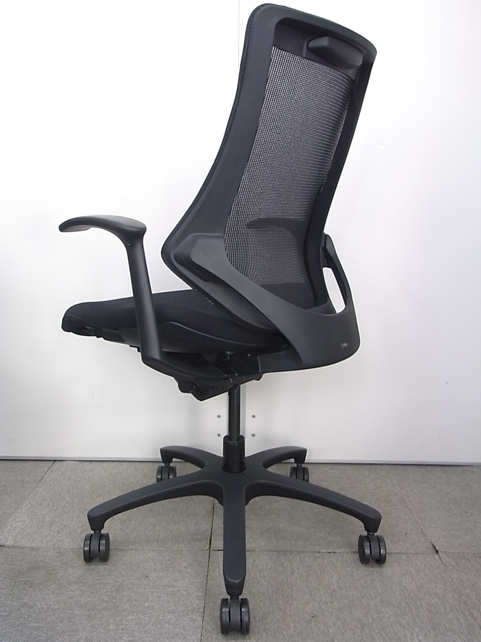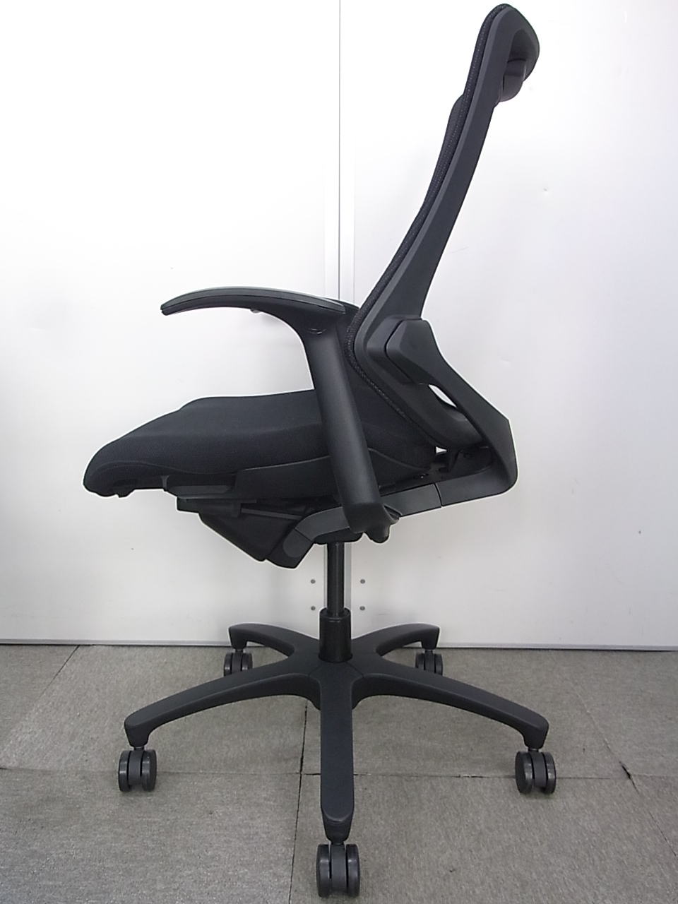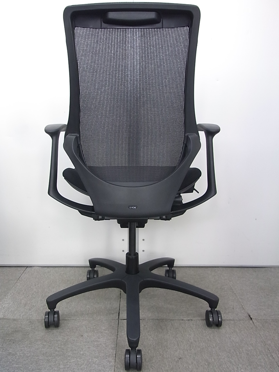 【三次元フォルムが腰にフィット!】希少なエラストマータイプ! ■イトーキ製 エフチェア 肘付 ブラック ハイバック ■姿勢の変化にフレキシブルに対応!