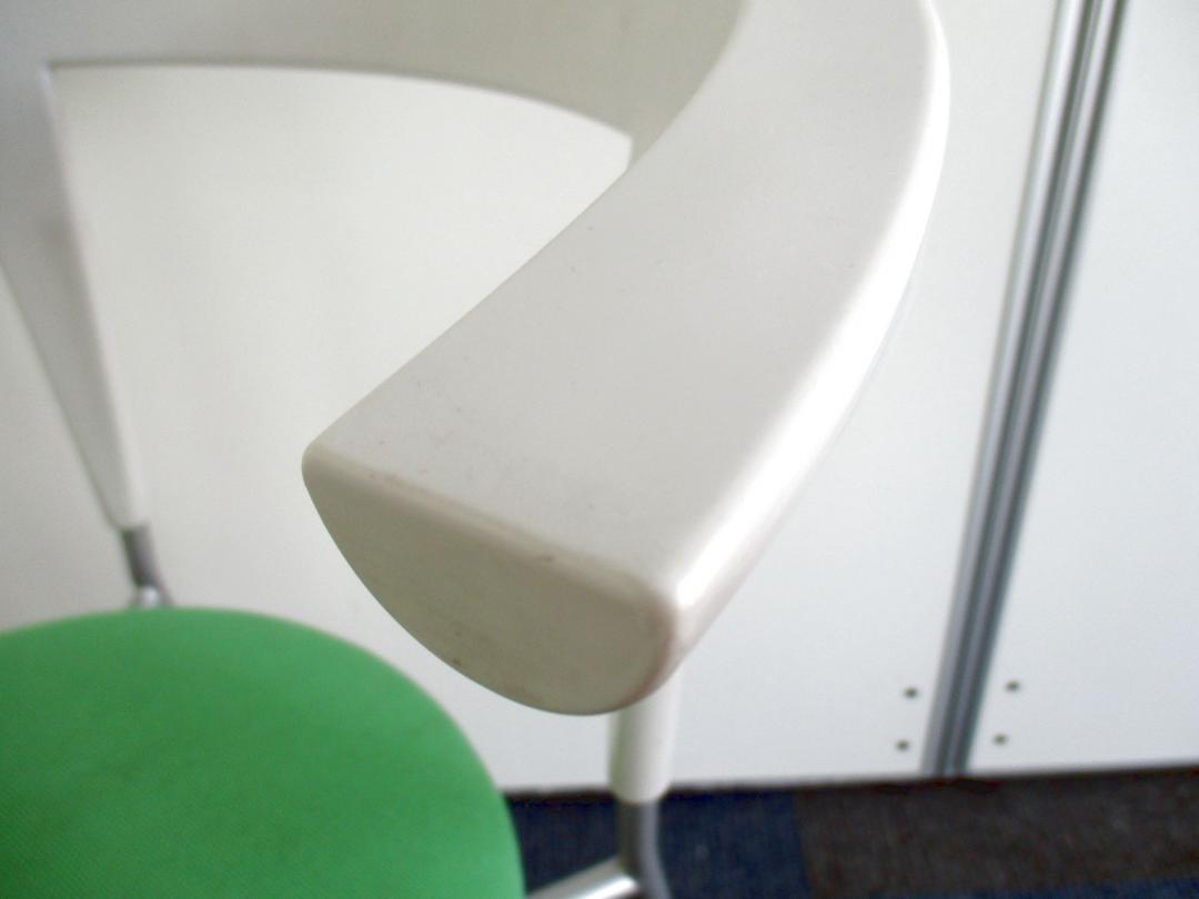 - かなり強い濃い黄ばみ・変色が商品全体にある。(例、座面・背もたれ、脚部等にある。)