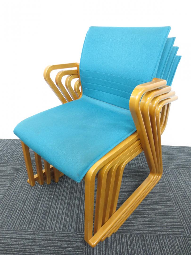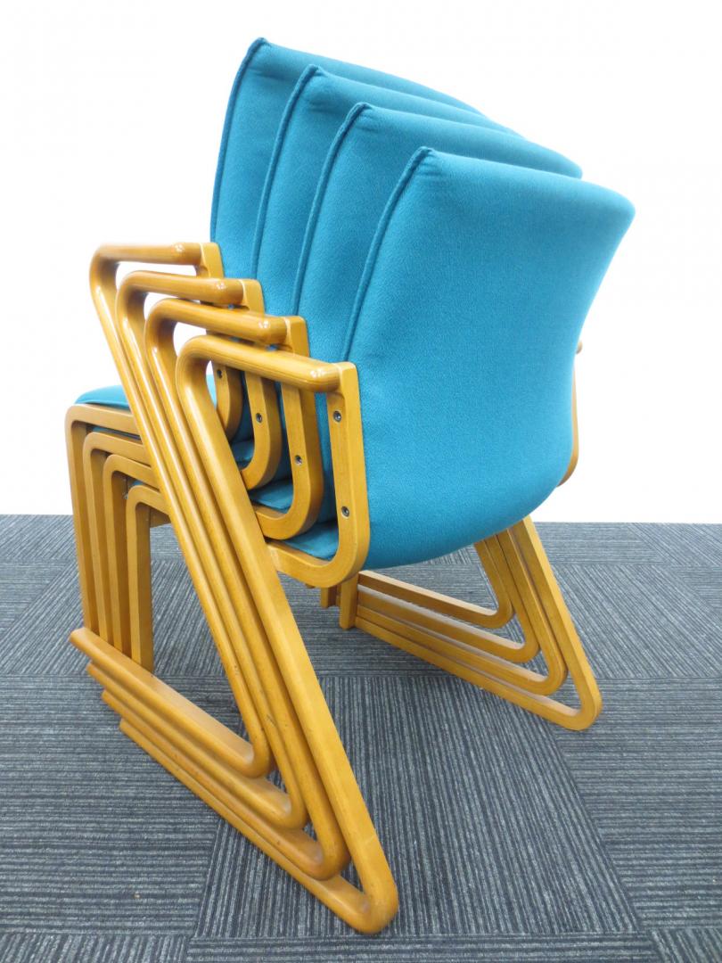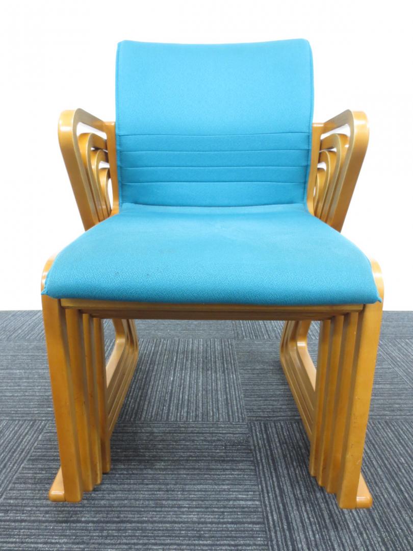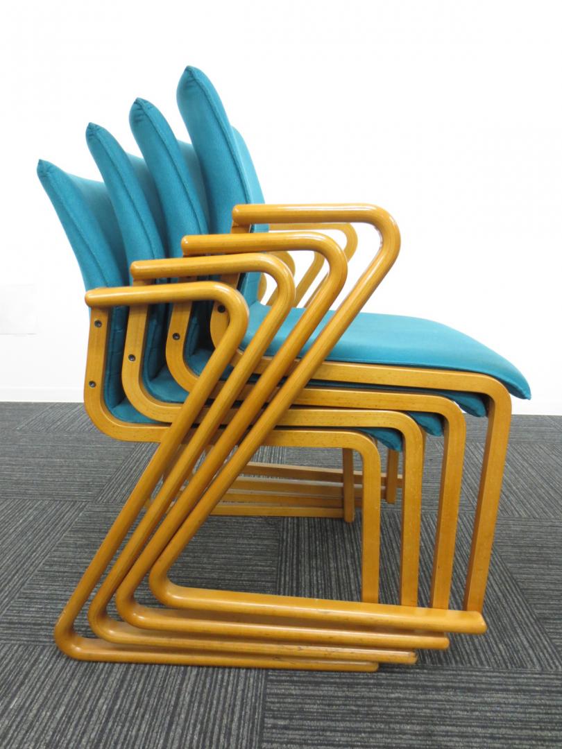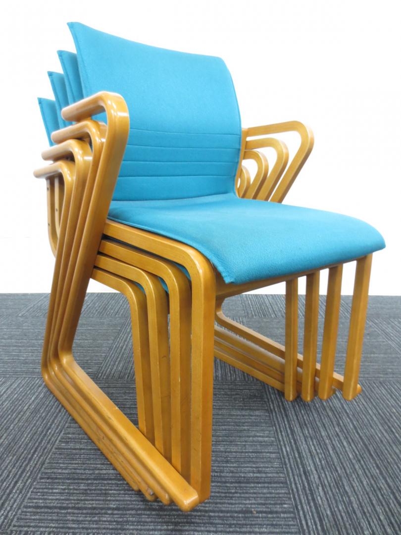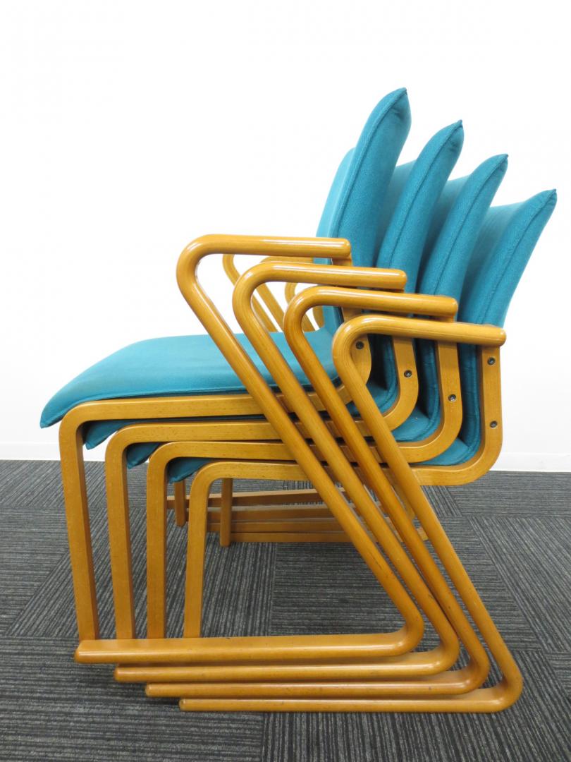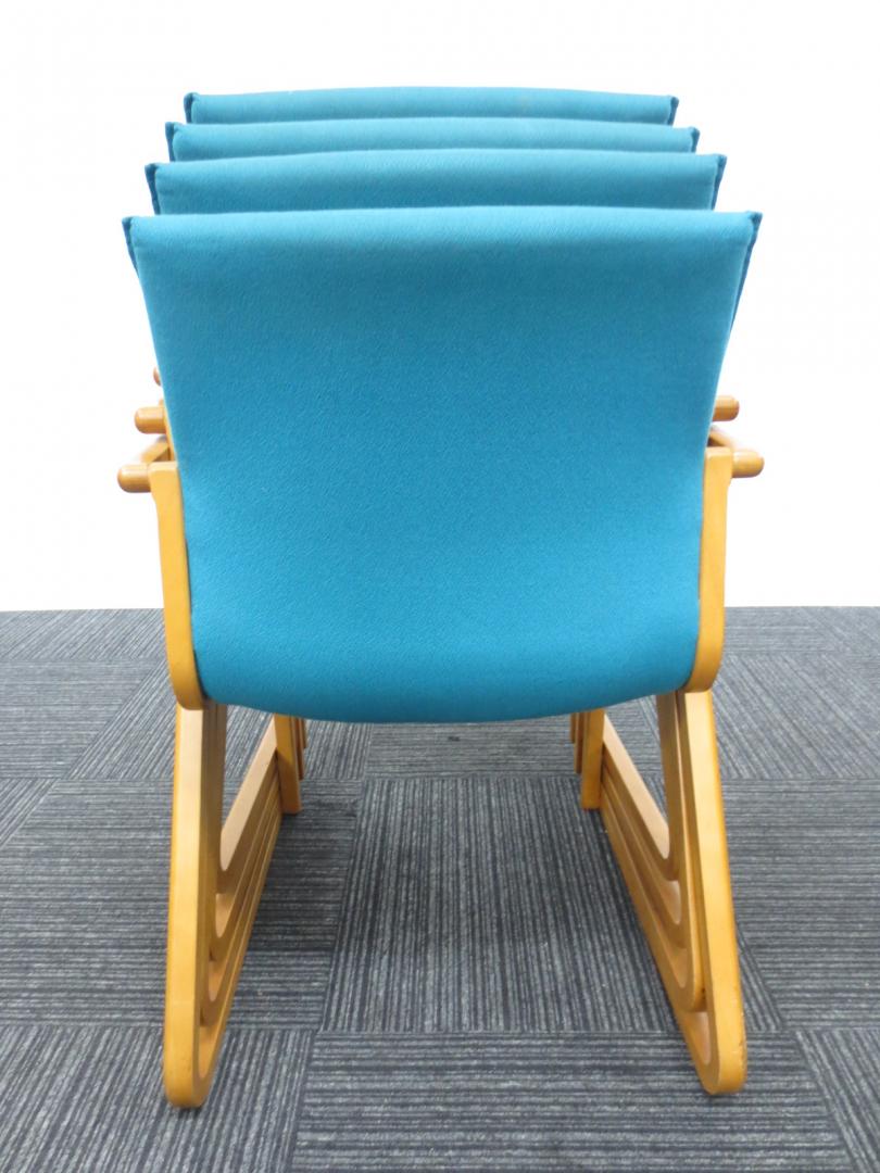 【4脚セット】【木製フレームの会議用チェア】コクヨ製 グリーン 会議室と多彩にご利用できます。【相模原・町田店】- 春日部・越谷店