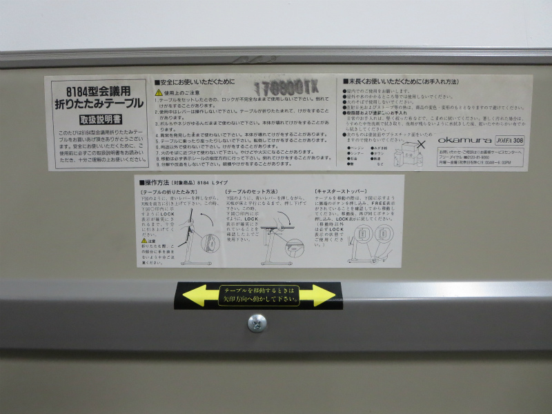 【中古】 8184LB オカムラ/okamura スタックテーブル(長机/折りたたみ/会議用) 159727