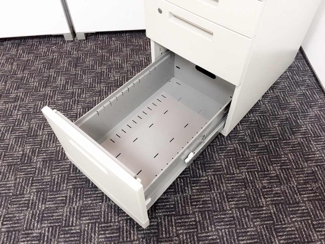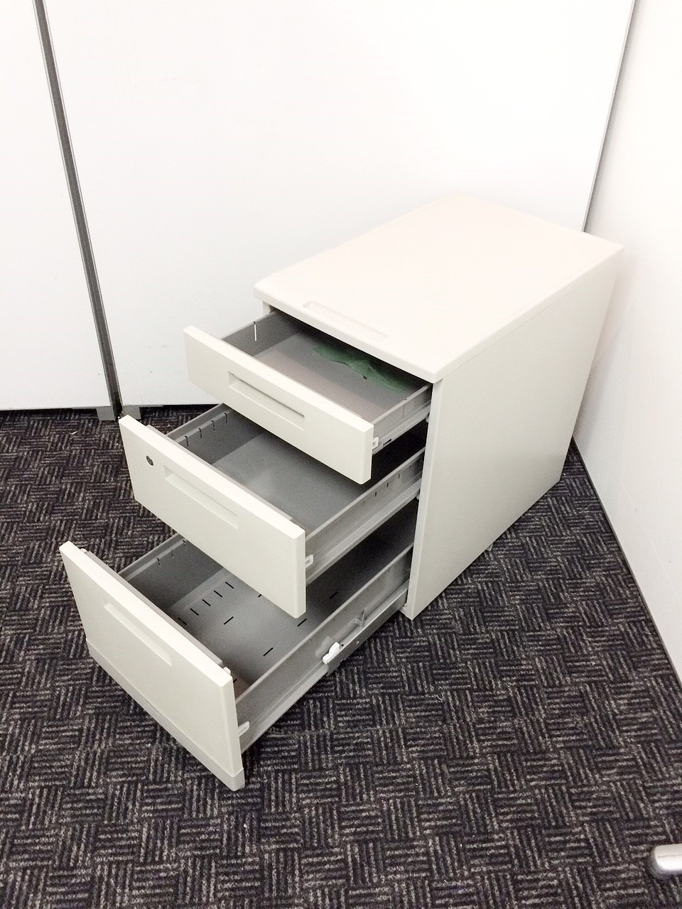 - 一部不具合ありその脇机・ワゴンの本来の効用を果たすための機能以外の一部が使用不可な状態。(例、引出が開閉しづらい、 キャスターロック機能使用不可、ラッチ不良 等がある。)