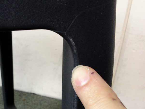 - 目立つ箇所あり傷・破れ・ほつれ・へたり・しわが多数または深い傷・破れ・ほつれ・へたり・しわが一部ある。※座面・背もたれ、シェル、脚部等にある。