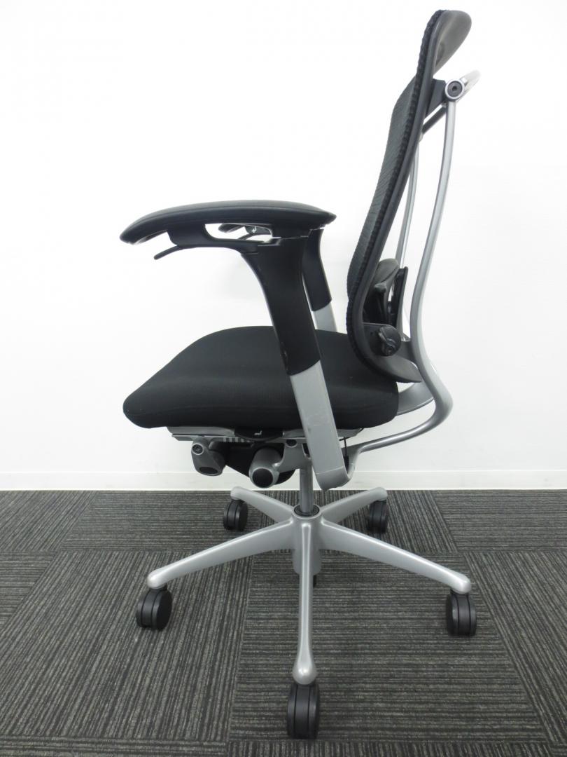 【世界で認められた革新的タスクチェア!人間工学に基づいた快適な座り心地を実現!】■オカムラ(okamura)製 コンテッサ(Contessa)チェア ハイバック 肘付き 背面メッシュ ■可動肘・ランバーサポート付 ■ブラック ※肘スレ有