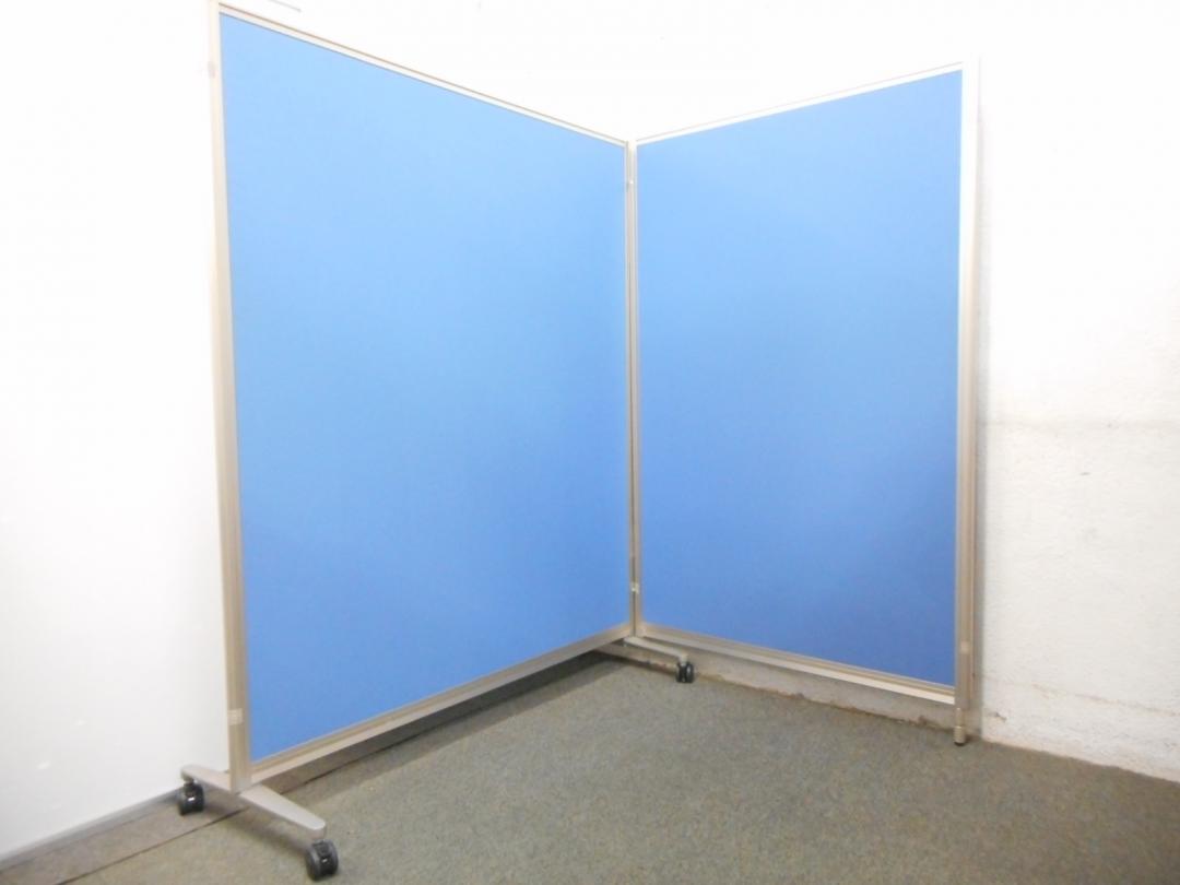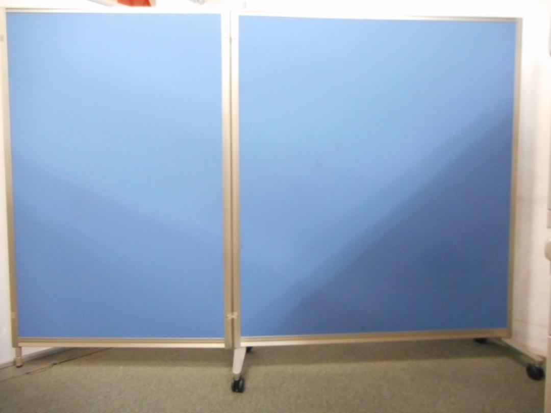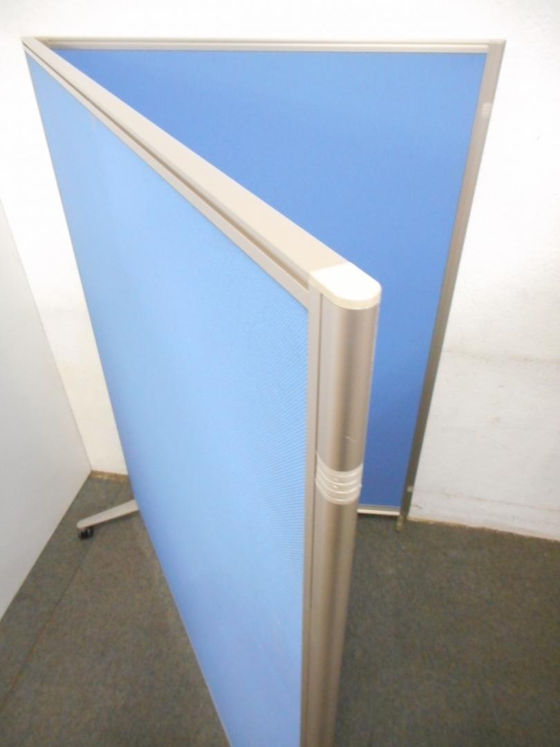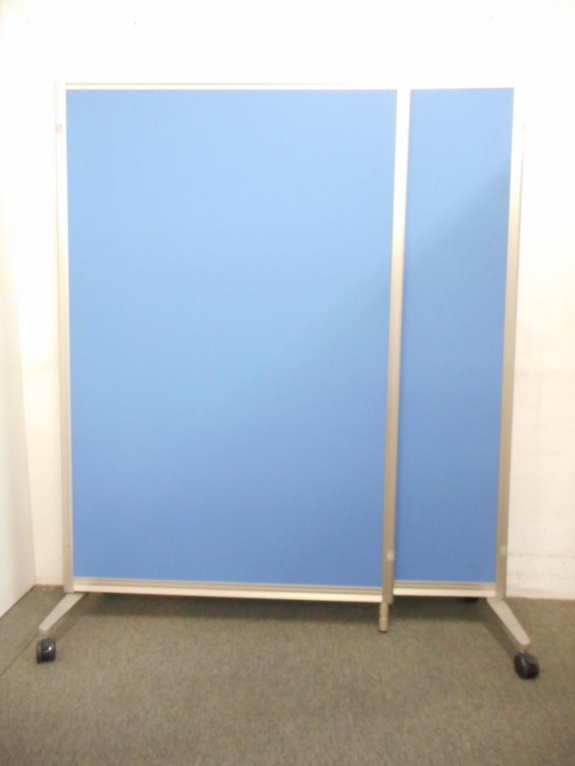 【キャスター付きで移動がラクラク!】■【2つ折りパーティション(ブルー)】■【インテリアスクリーン・2連衝立パネル】■【ウチダ・リンキー(UCHIDA・LINKY)】- 在庫数