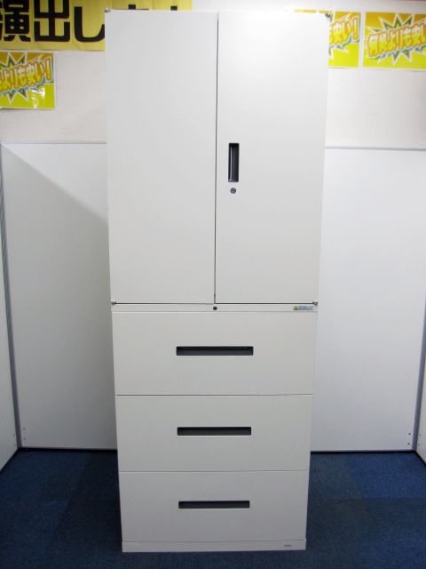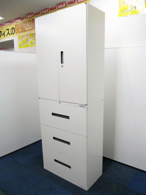 【オフィス収納システム】VILLAGE(ヴィラージュ)シリーズ 書庫セット(上段:両開き 下段:3段ラテラル)ちょっとアイボリーっぽいホワイト【オフィス家具】- 品川・三田店