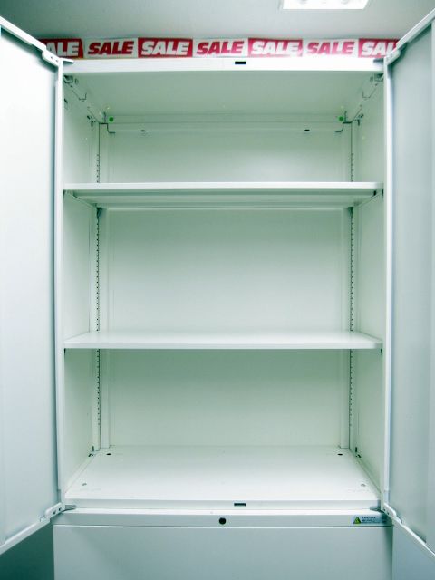 - 多数不具合あり引出の開閉不可、施錠不可、棚板無しといったその書庫の本来の効用を果たすための機能以外の多数が使用不可(例、扉、引出の開閉がしづらいなどがある。 )