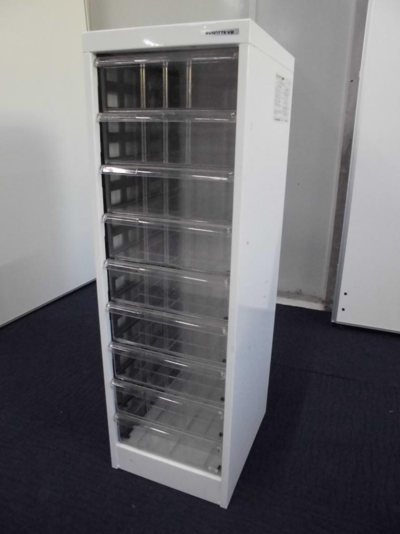 - 多数不具合あり引出の開閉不可、施錠不可、棚板無しといったその書庫の本来の効用を果たすための機能以外の多数が使用不可(例、扉、引出の開閉がしづらいなどがある。 )