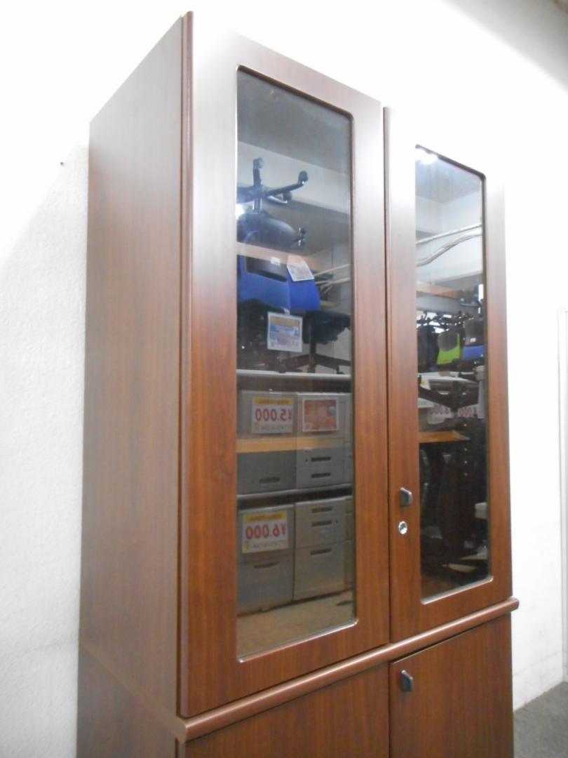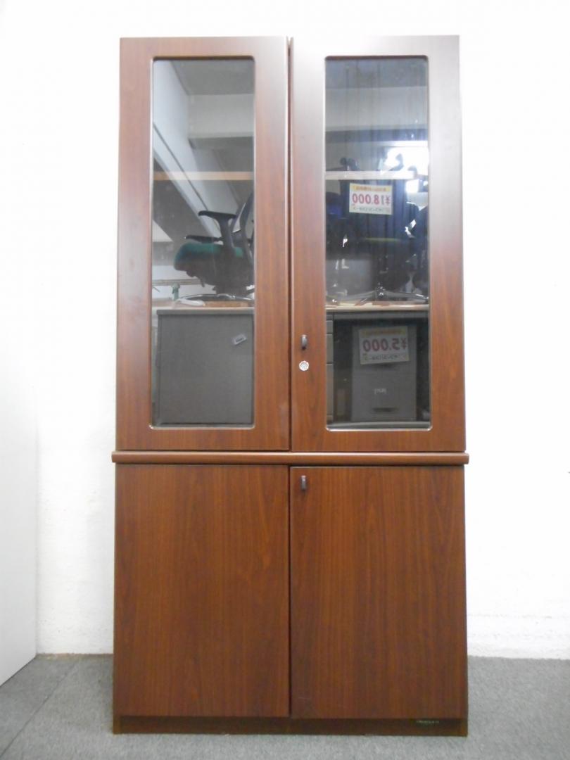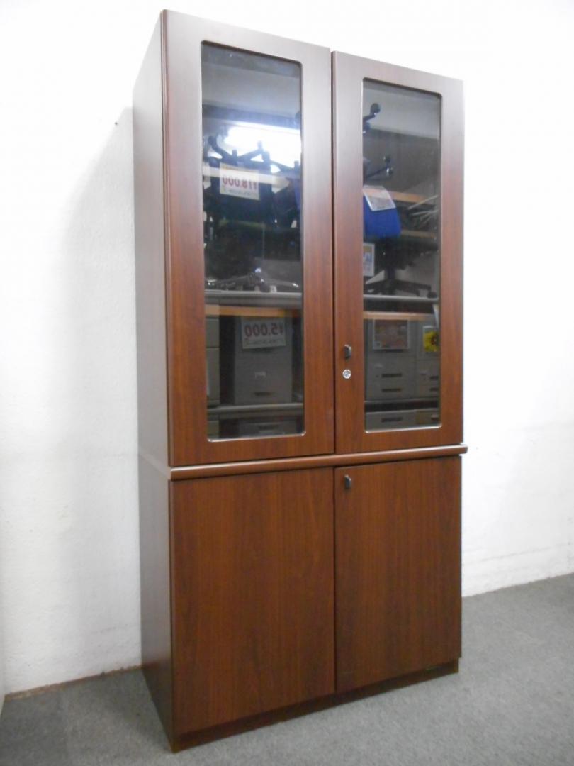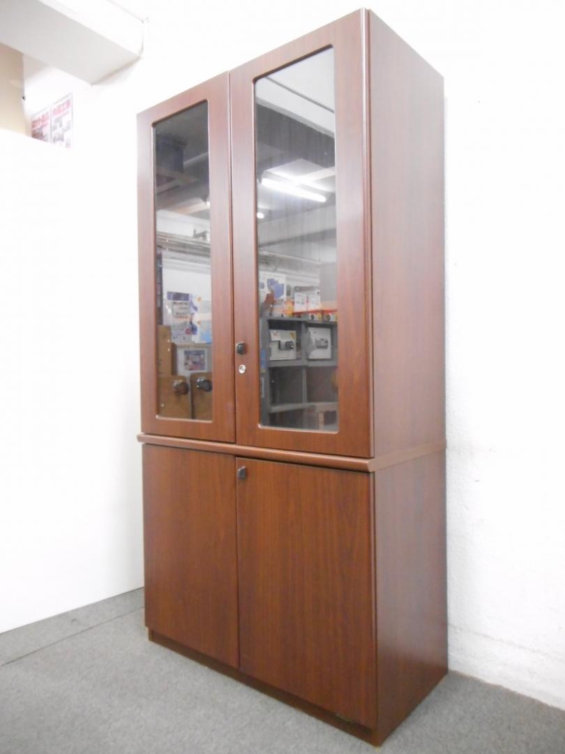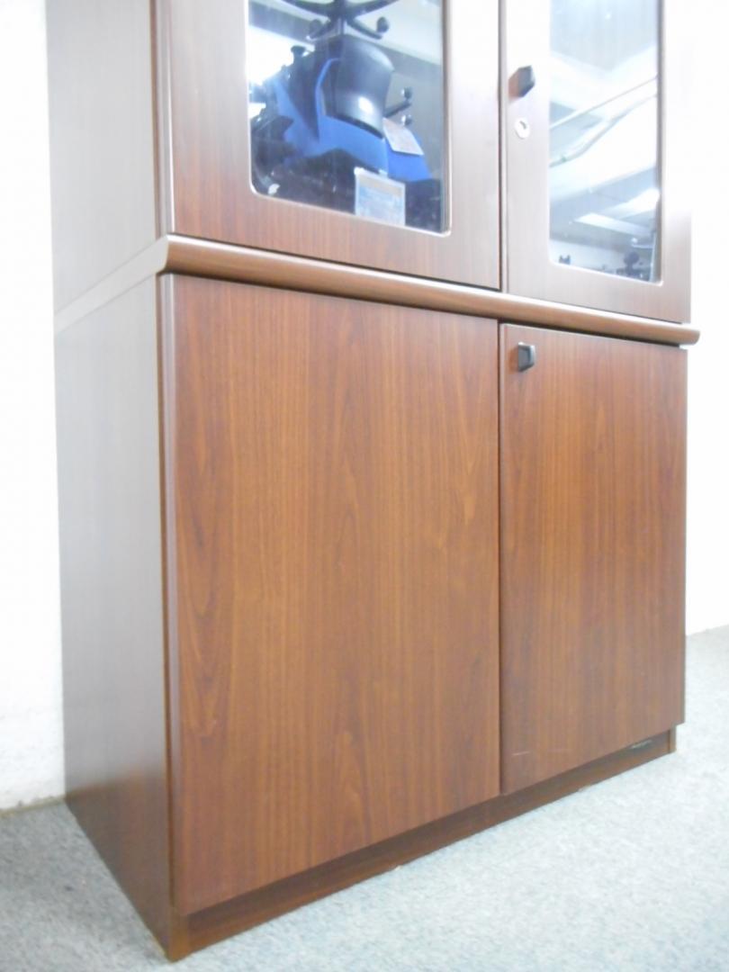 【役員用書庫】■オカムラ製・木製書棚(上段ガラス扉)■【高級オフィス家具】- 在庫数