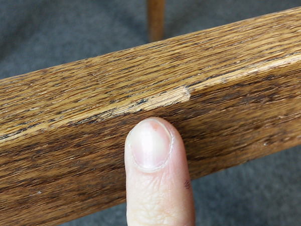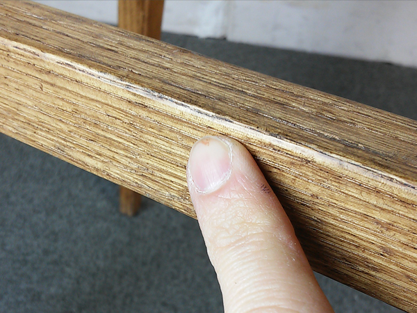- あり黄ばみ・変色が広い範囲にうっすらある、または濃い黄ばみ・変色が一部ある。(例、座面・背もたれ、脚部等にある。)