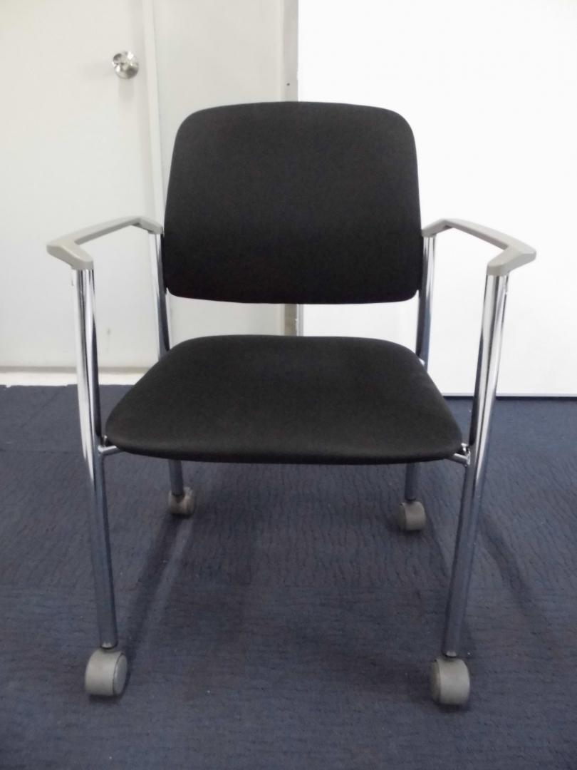 【在庫処分値下げ!】肘付スタッキングチェア(キャスター付)|ブラック|重ね合わせ可能でスッキリ収納!- 立川・八王子店
