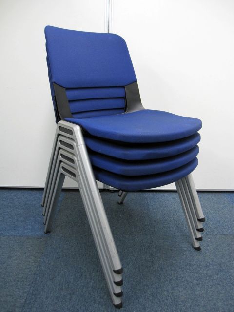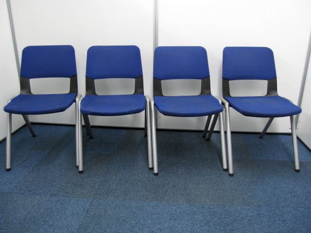 【セット商品】【会議用チェア】パレード(Parade) スタッキングチェア 肘無し×4脚セット カラー:ブルー ※クリーニングしても落ちない汚れ有り- 品川・三田店