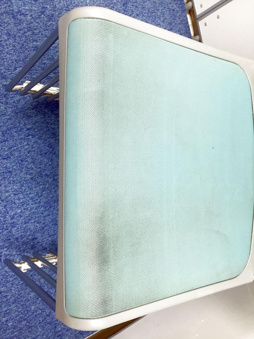 - あり黄ばみ・変色が広い範囲にうっすらある、または濃い黄ばみ・変色が一部ある。(例、座面・背もたれ、脚部等にある。)