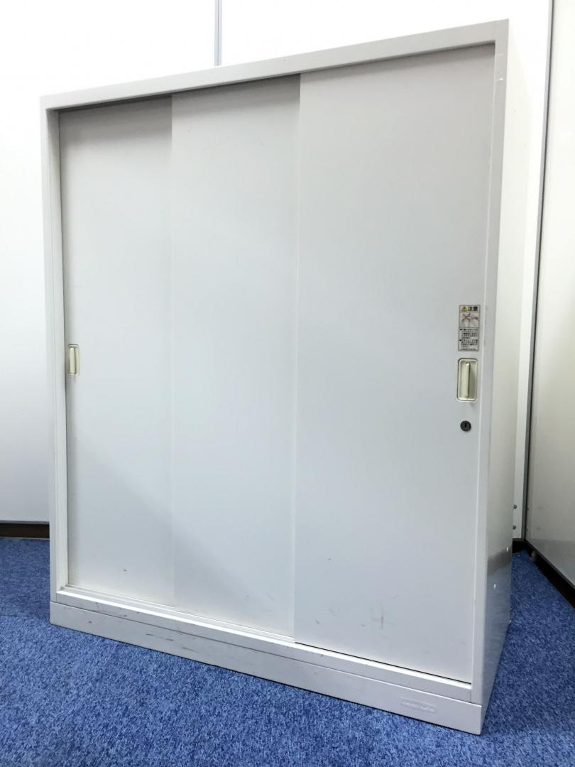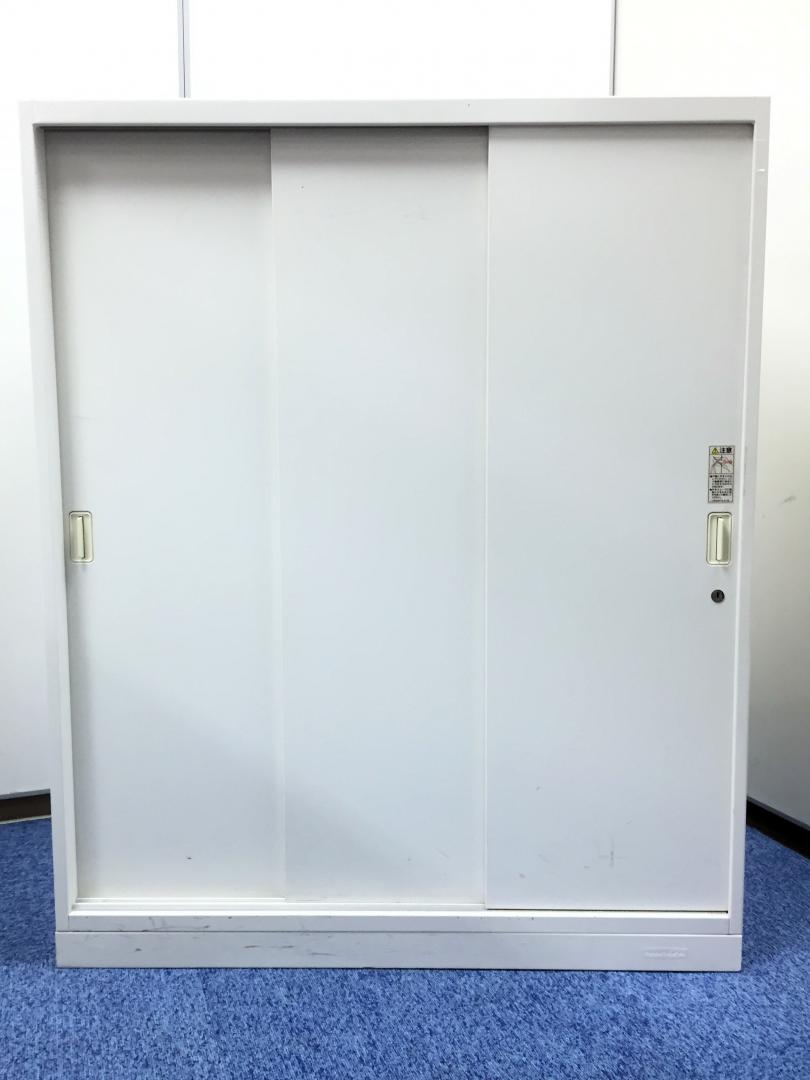 オカムラ製 人気レクトラインシリーズ ホワイト シリンダー W800xD450XH1050 3枚引戸 ※ベースなし 3枚引き違い書庫!!