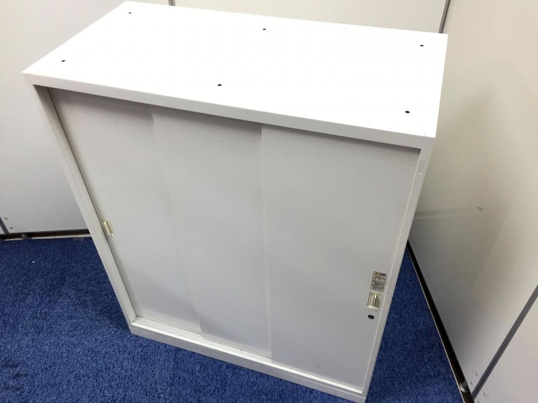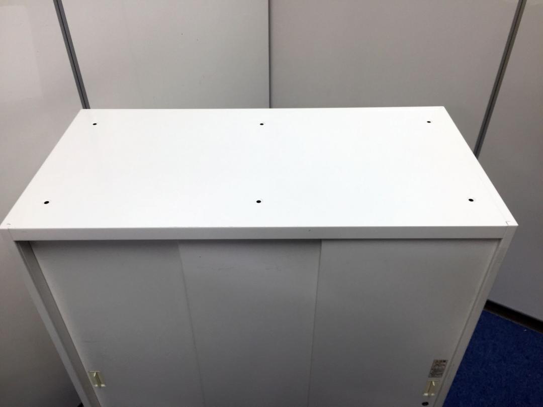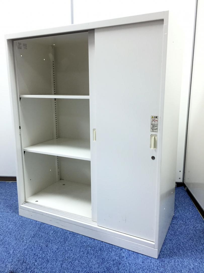 2枚引き戸書庫 オカムラ レクトライン 鍵付き シリンダー錠 ホワイト 天板無し スライド式の扉のため導線を邪魔しません