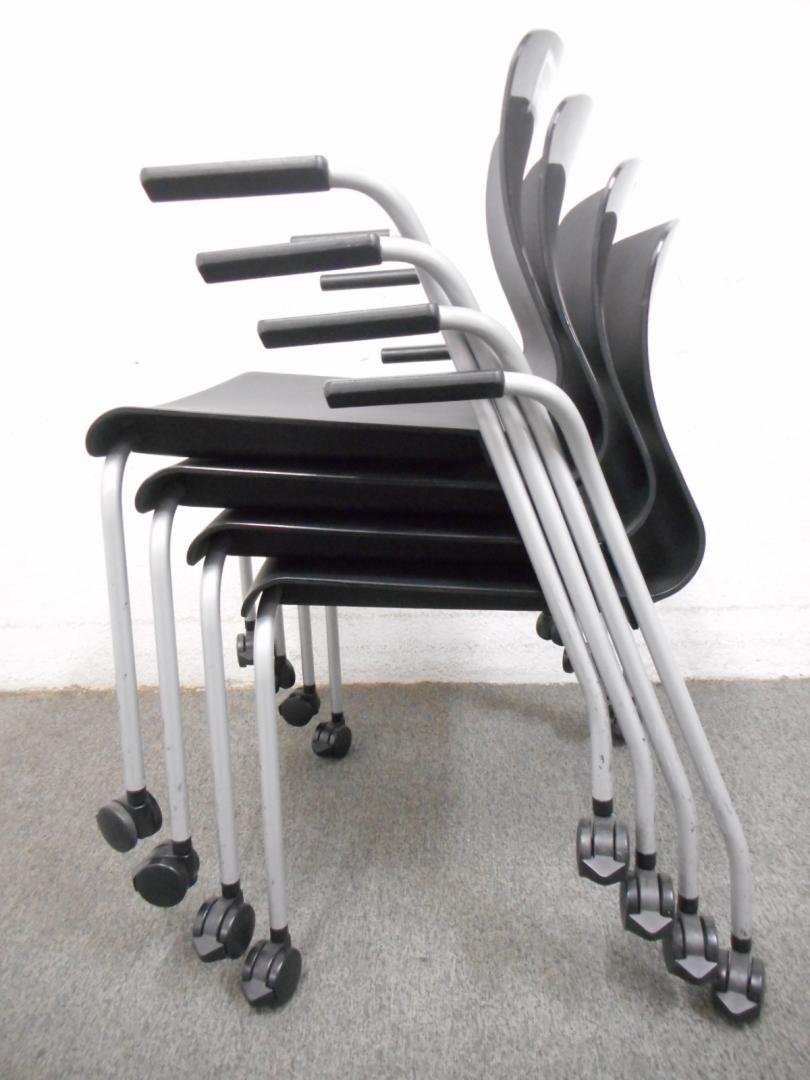【背座一体の曲線デザイン!】■ALINA/C(アリーナC)スタッキングチェア ■ブラック 肘/キャスター付 ■コクヨ(KOKUYO)- 在庫数