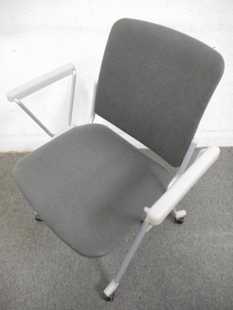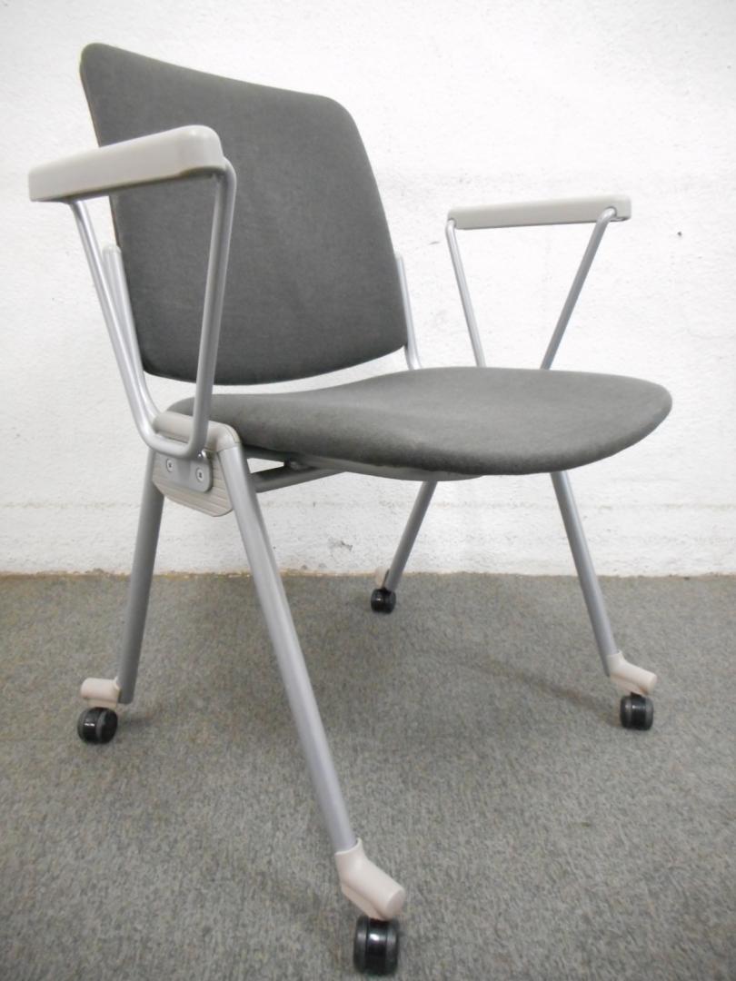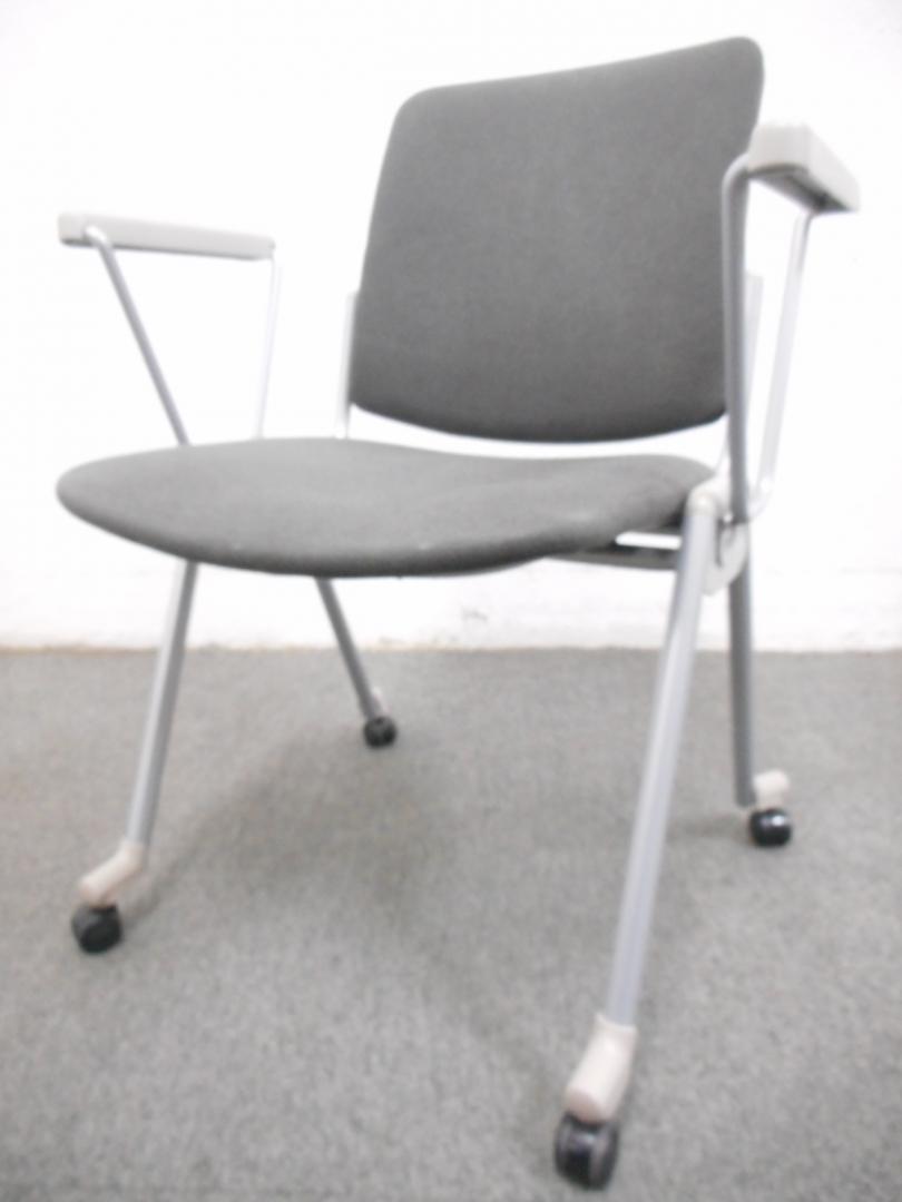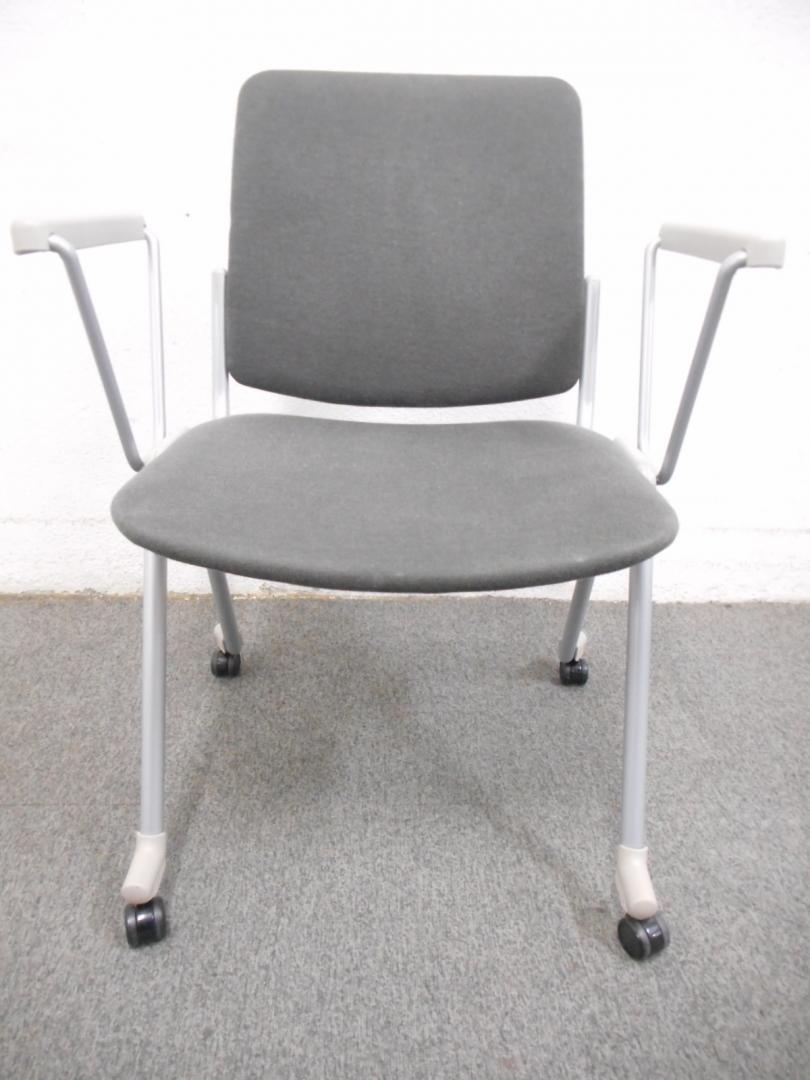 【ラスト1点・お買得品!】■スタッキングチェア ■グレー ■肘・キャスター付 ■サンケイ(SANKEI)- 在庫数