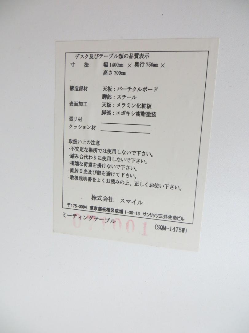 【中古】 SQM-1475W ミーティングテーブル(会議机) 161053
