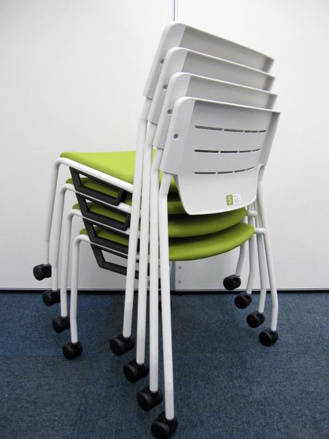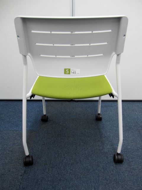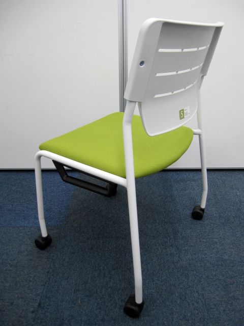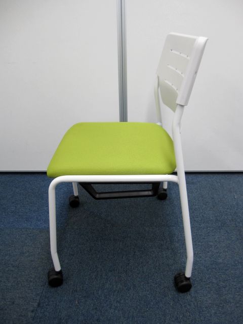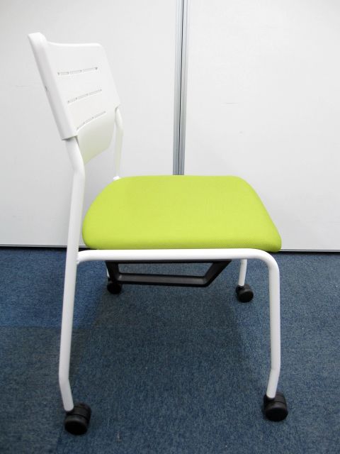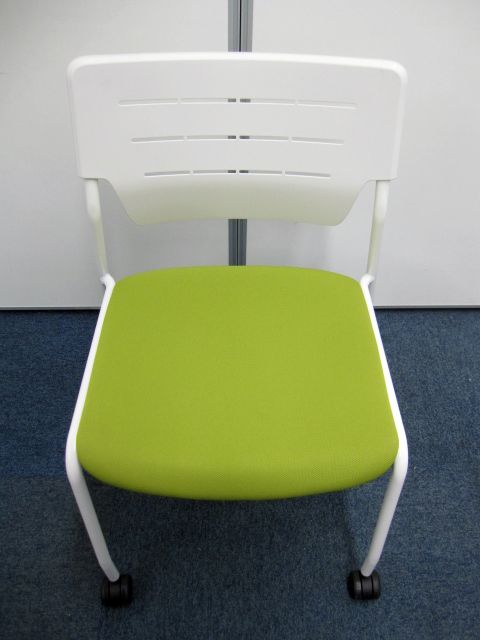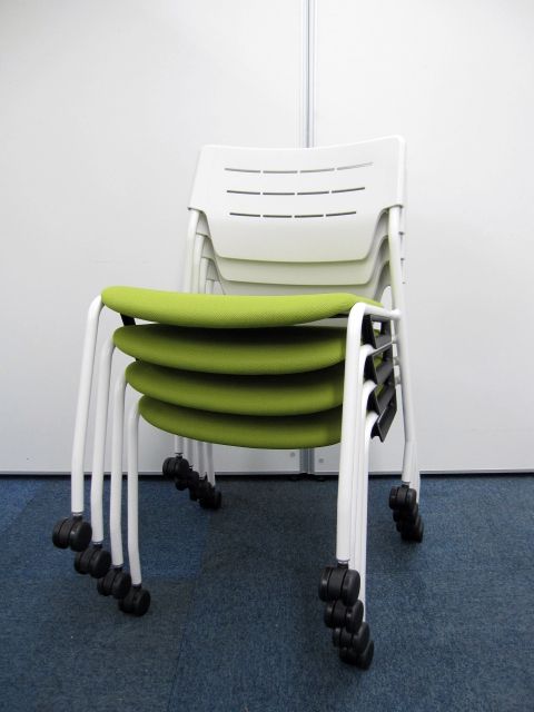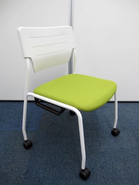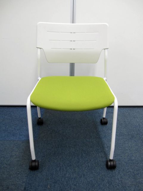【2015年製】【ミーティングチェア】エレックSC(EleckSC)チェア4本脚キャスター仕様 カラー:背:ホワイト 座:モスグリーン【柔らかな座り心地のスタッキングチェア】【残り4脚】- 品川・三田店