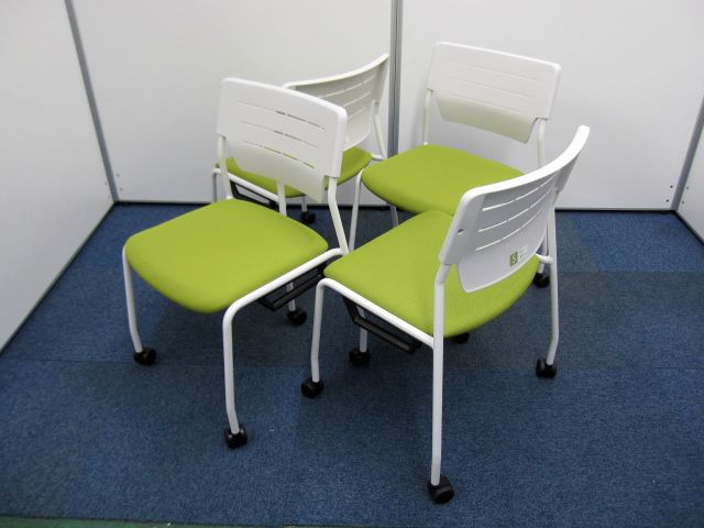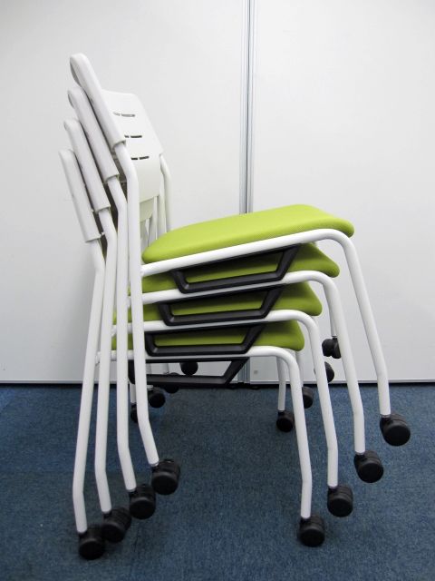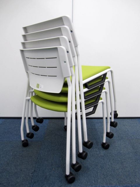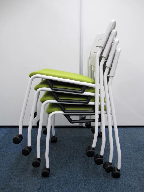 【セット商品】【2015年製】【ミーティングチェア】4脚1セット エレックSC(EleckSC)チェア4本脚キャスター仕様 カラー:背:ホワイト 座:モスグリーン【柔らかな座り心地のスタッキングチェア】【残り1セット】- 品川・三田店