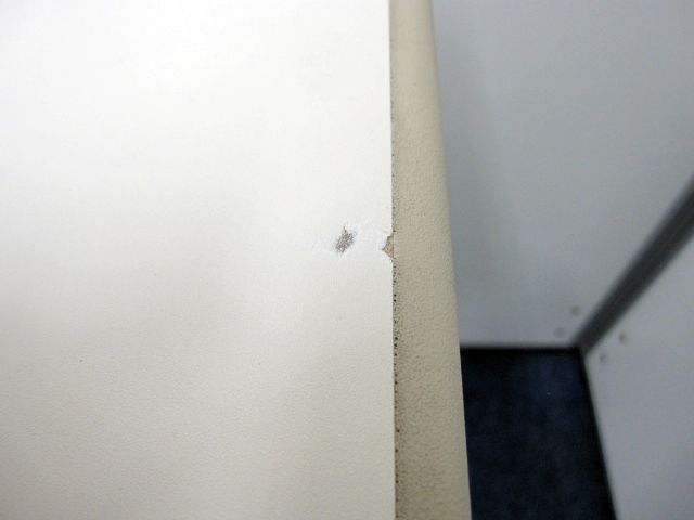 - あり黄ばみ・変色が広い範囲にうっすらある、または濃い黄ばみ・変色が一部ある。(例、天板、幕板、棚板、サイド部分、脚部等にある。)