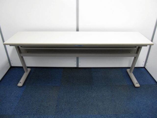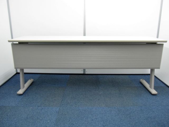 【会議用サイドフォールドテーブル】幅180cm 奥行45cm 高さ70cm 幕板付 サイドスタックテーブル カラー:ニューグレー- 品川・三田店