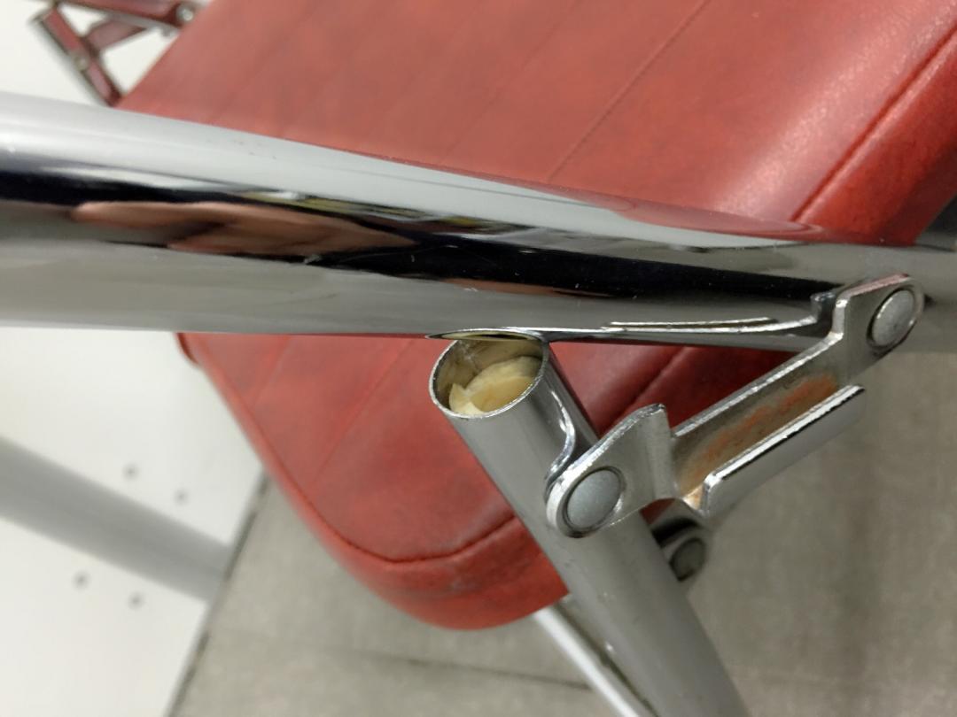 - かなり強い濃い黄ばみ・変色が商品全体にある。(例、座面・背もたれ、脚部等にある。)