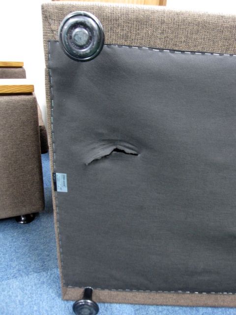 - 目立つ箇所ありソファの場合、破け、ホツレ、へたり、しわ等が多数または深い破け、ホツレ、へたり、しわ等一部ある。(例、背もたれ、肘かけ、座面等にある。)センタ>ーテーブルの場合、傷・凹みが多数または深い傷・凹みが一部ある。(例、天板、脚にある。)