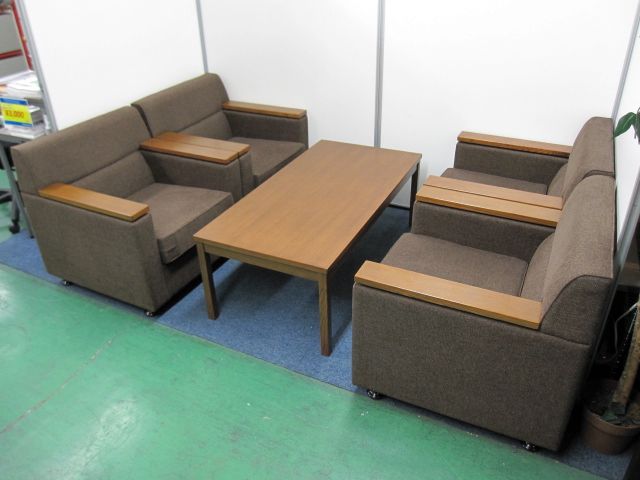 【中古】 アームチェア:LVW-11CN-12K1 センターテーブル:TVW-1264ER-12 イトーキ/ITOKI 応接セット一式 161270