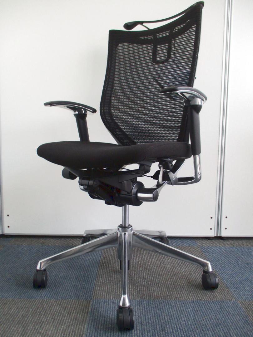 オカムラ バロン ハイバックモデル 背:メッシュ 座:クッション 張地:ブラック 脚:ポリッシュ アジャストアーム搭載